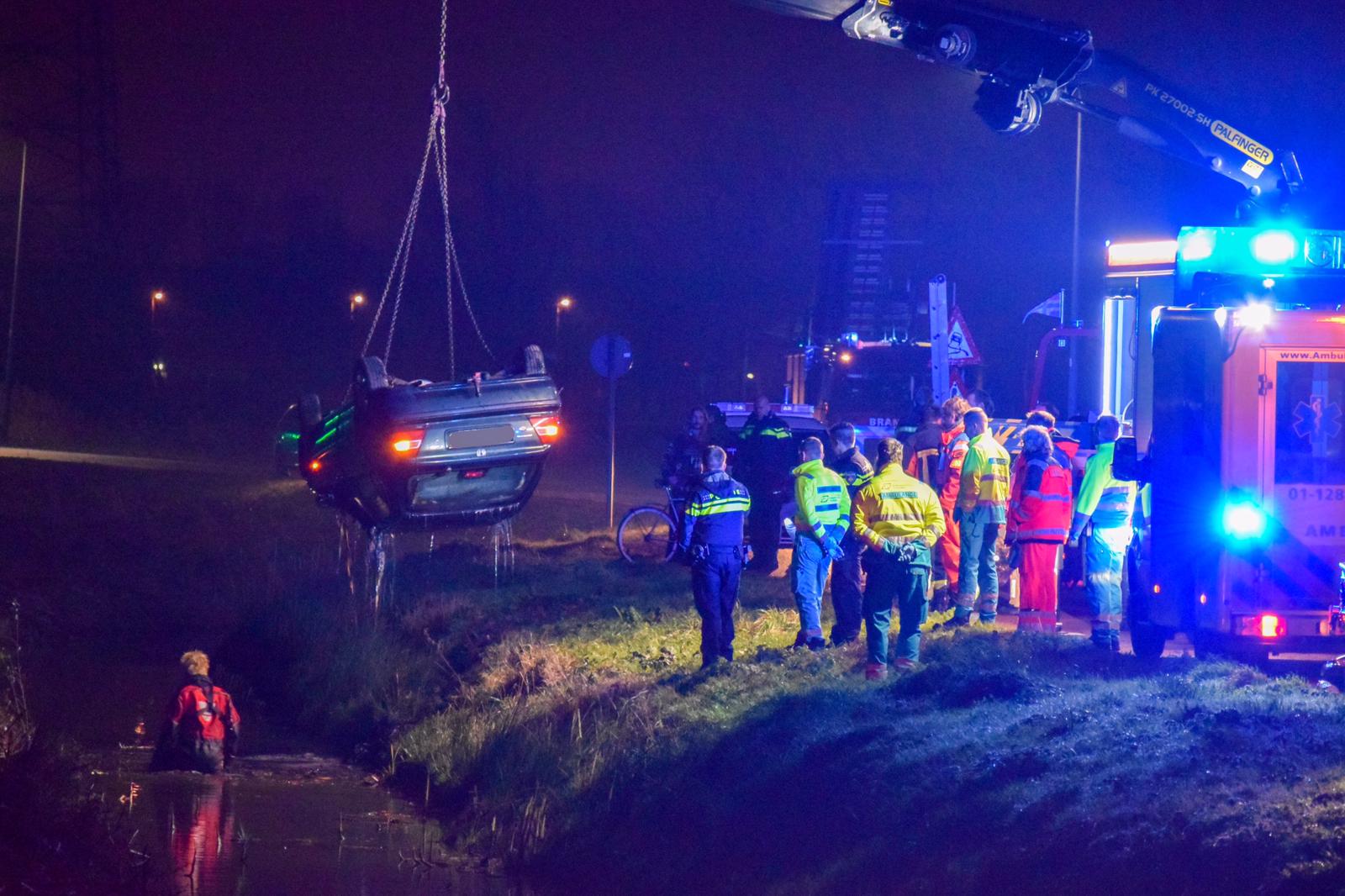 Hulpdiensten zijn in de nacht van vrijdag op zaterdag massaal uitgerukt naar het Hoendiep. Een auto lag daar op de kop in de sloot. Dat meldt de incidentenwebsite tencatefotografie.nl.