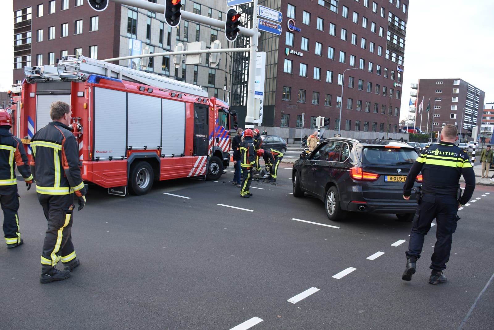 De brandweerauto reed met loeiende sirenes door de stad, maar werd desondanks door twee auto’s aangereden op de kruising Europaweg, Sontweg, vlakbij de brandweerkazerne.