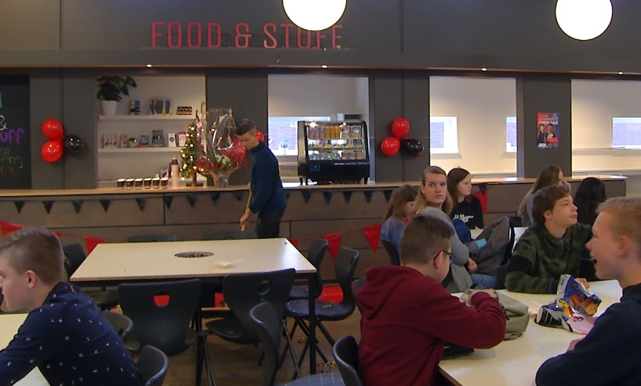 Het gaat om derdejaars leerlingen VMBO die het vak Economie en Ondernemen in hun pakket hebben zitten. “Vorig jaar kregen we de opdracht om een plan te ontwikkelen voor een eigen onderneming”, vertelt één van de leerlingen. “In het begin was dat best wel moeilijk want waar kies je voor, en wat is haalbaar.” Uiteindelijk werd gekozen om een schoolwinkel te beginnen waar behalve eten en drinken ook noodzakelijke schoolspullen verkocht worden. “Dit hebben we gepresenteerd aan de directie van de school en die waren zo enthousiast dat het ook echt gerealiseerd is.”