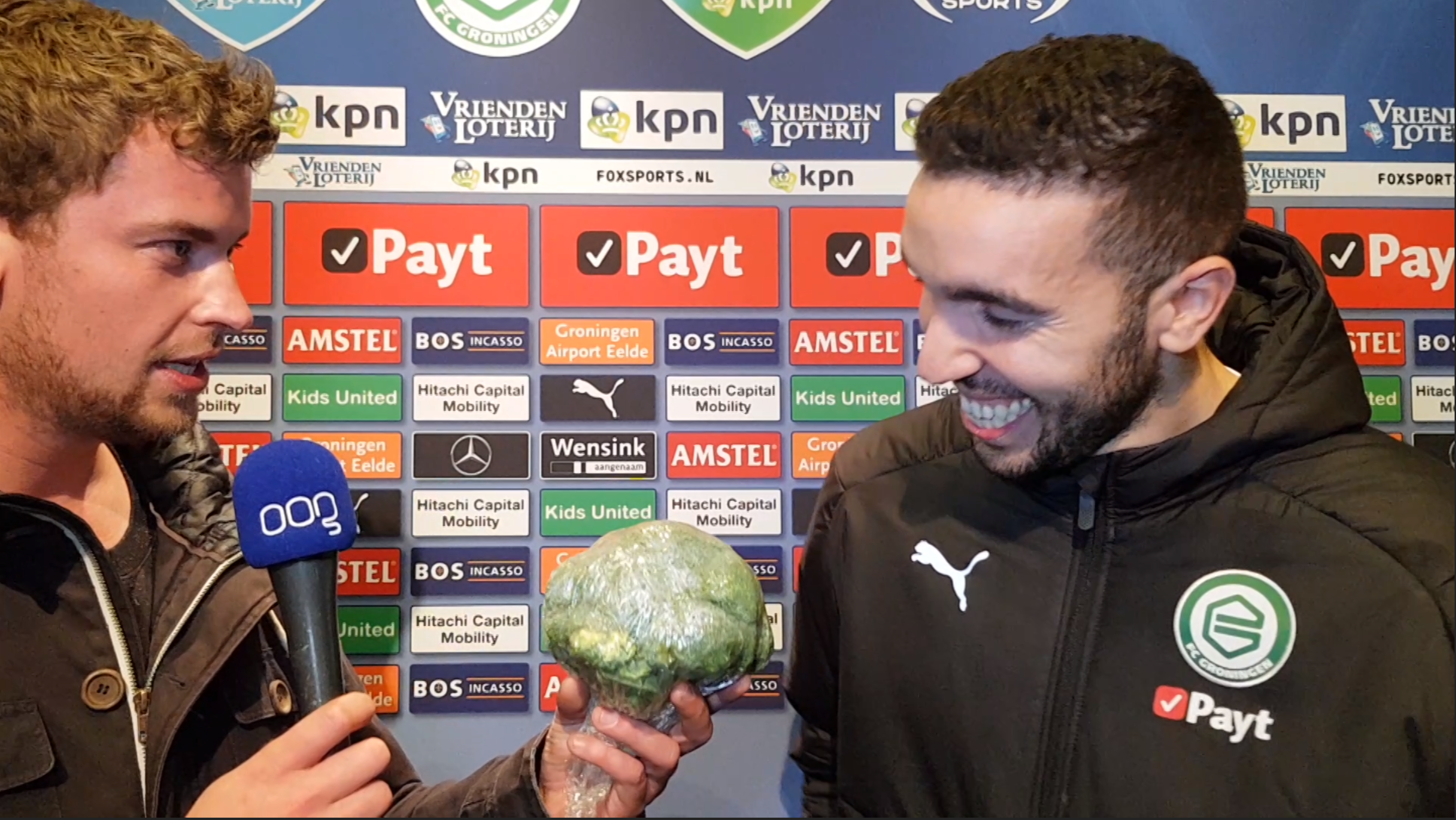 FC Groningen-speler Mimoun Mahi heeft zondag tijdens de wedstrijd tegen NAC een broccoli gewonnen met een weddenschap. In de met 5-2 gewonnen wedstrijd tegen NAC Breda scoorde hij twee keer.