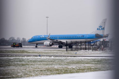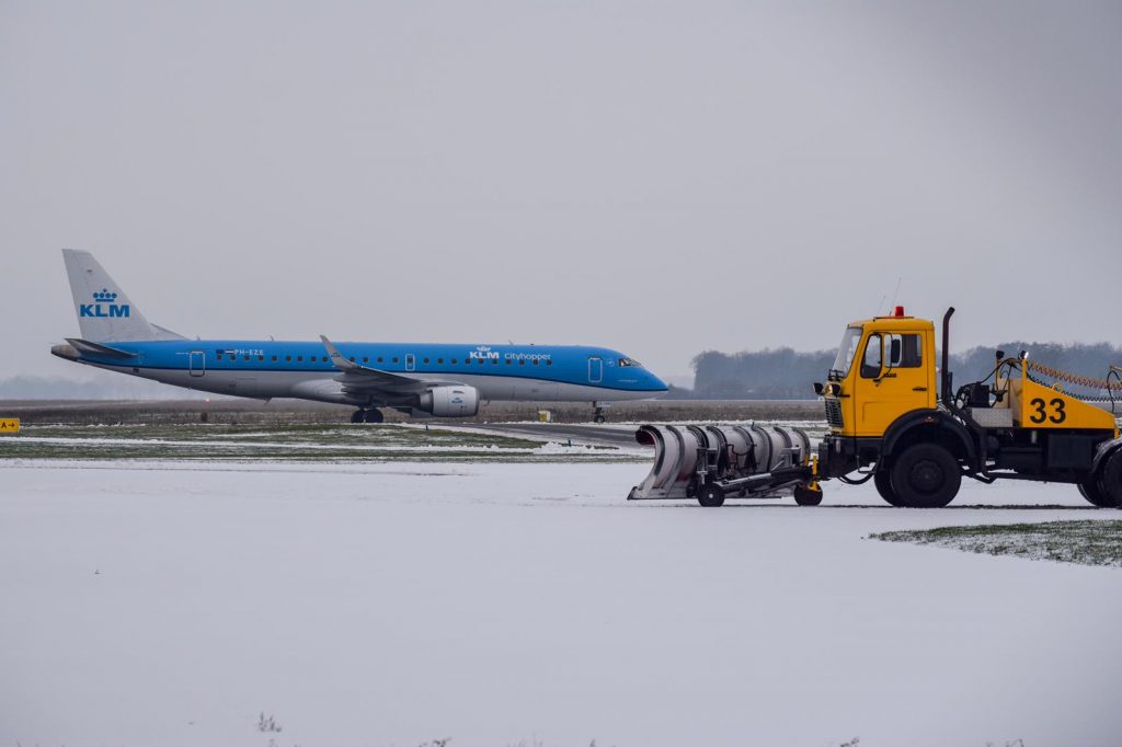 Vanwege de sneeuw heeft een vliegtuig van KLM zondagochtend niet kunnen landen op Schiphol. De Cityhopper moest uitwijken naar Groningen Airport Eelde.