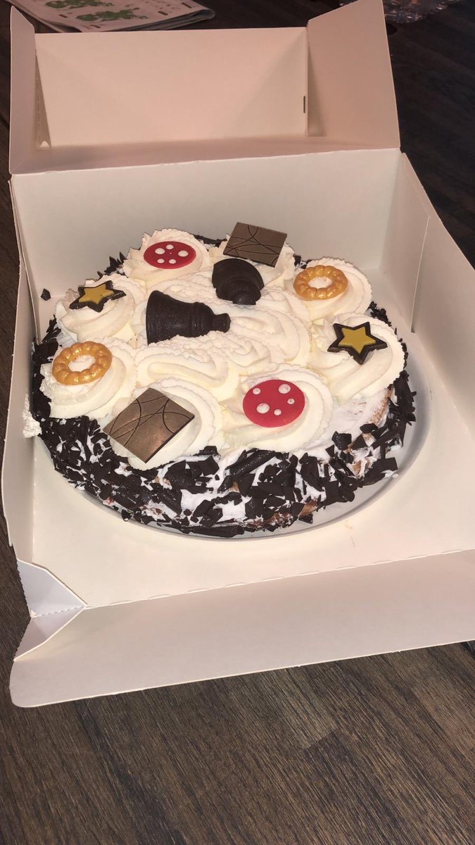 Als dank bracht ze gebak voor het team. Dat dat vervolgens met gepaste trots naar buiten bracht.