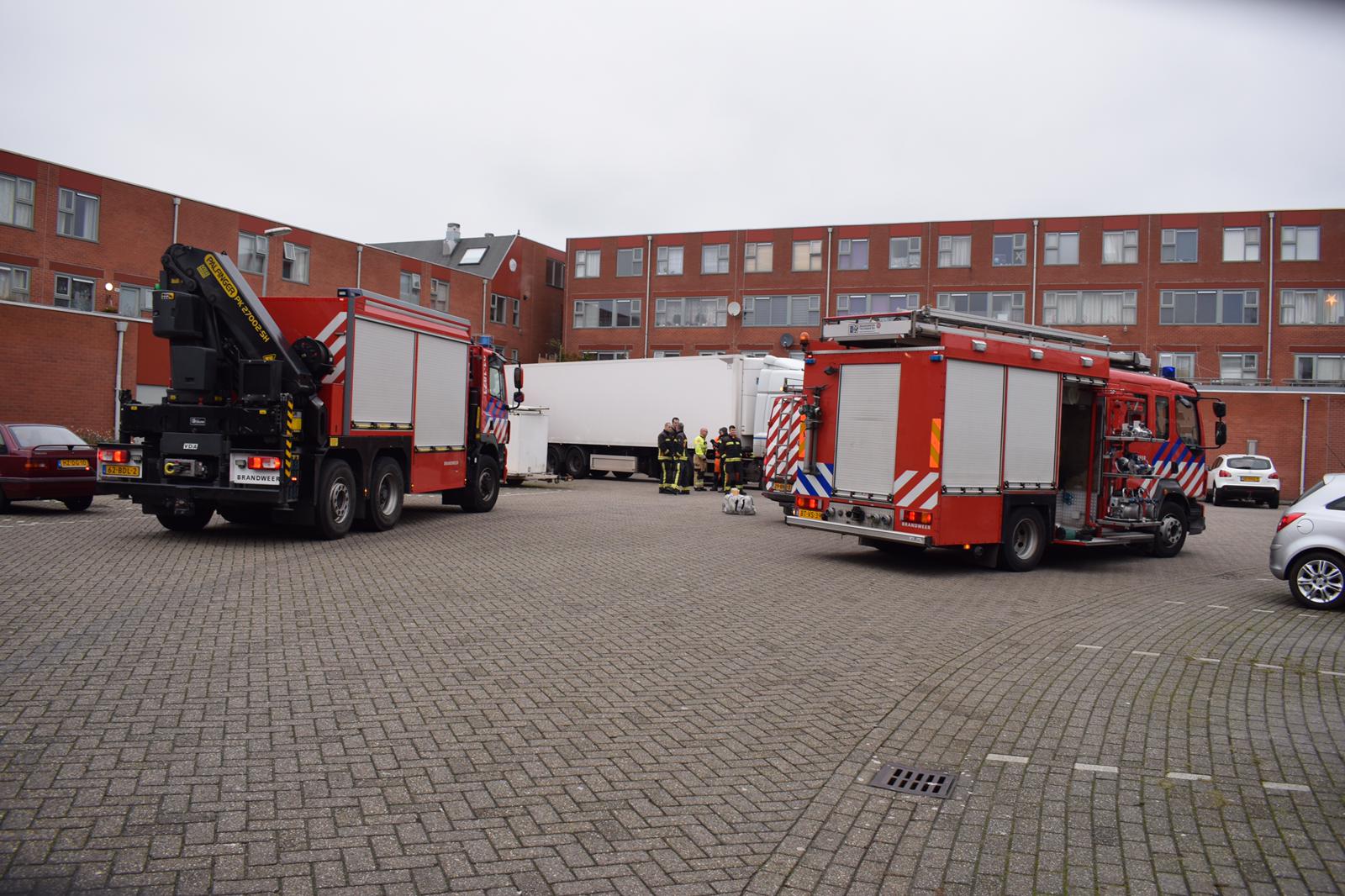 De melding van een brandstoflekkage kwam rond 11.45 uur bij de hulpdiensten binnen. Een chauffeur had op de Amkemaheerd zijn vrachtwagen met combinatie geparkeerd nabij een supermarkt toen hij ontdekte dat hij een spoor brandstof in de wijk had achtergelaten. “Ik denk dat het om een spoor van bijna twee kilometer gaat”, laat incidentfotograaf Rick ten Cate weten die ter plaatse is. “De lekkage is ontstaan ter hoogte van de afrit van de Ringweg. Het voertuig heeft vervolgens brandstof gelekt tot de parkeerplaats bij de supermarkt. In de wijk ruikt het behoorlijk naar diesel.”