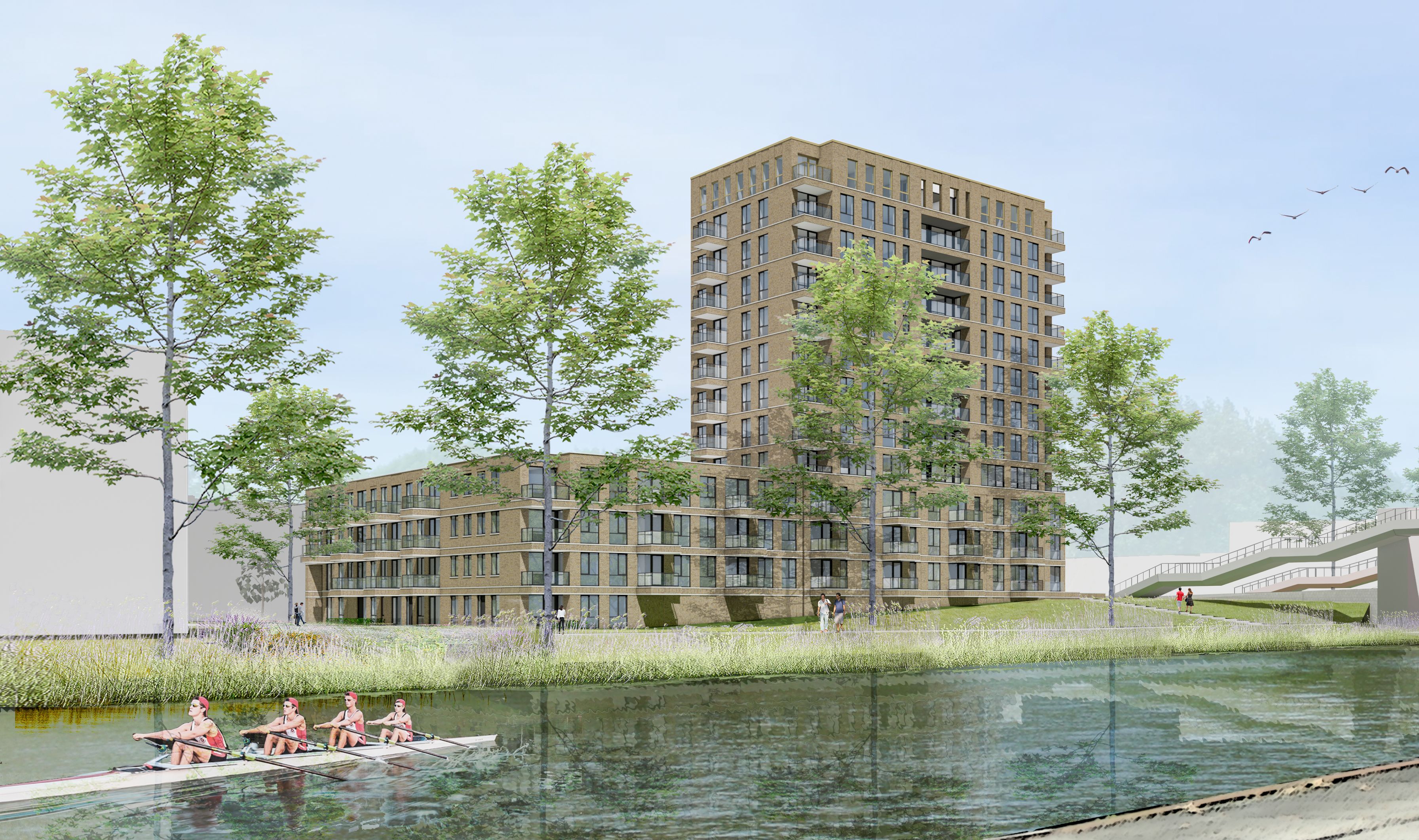 Er staat daar al een gebouw. Dit is slechts iets groter en voorziet in een behoefte. Door de hoogte in te gaan en compact te bouwen sneuvelen er slechts een paar bomen. Ik zou trouwens maar niet gaan roeien op dat drukke kanaal :p