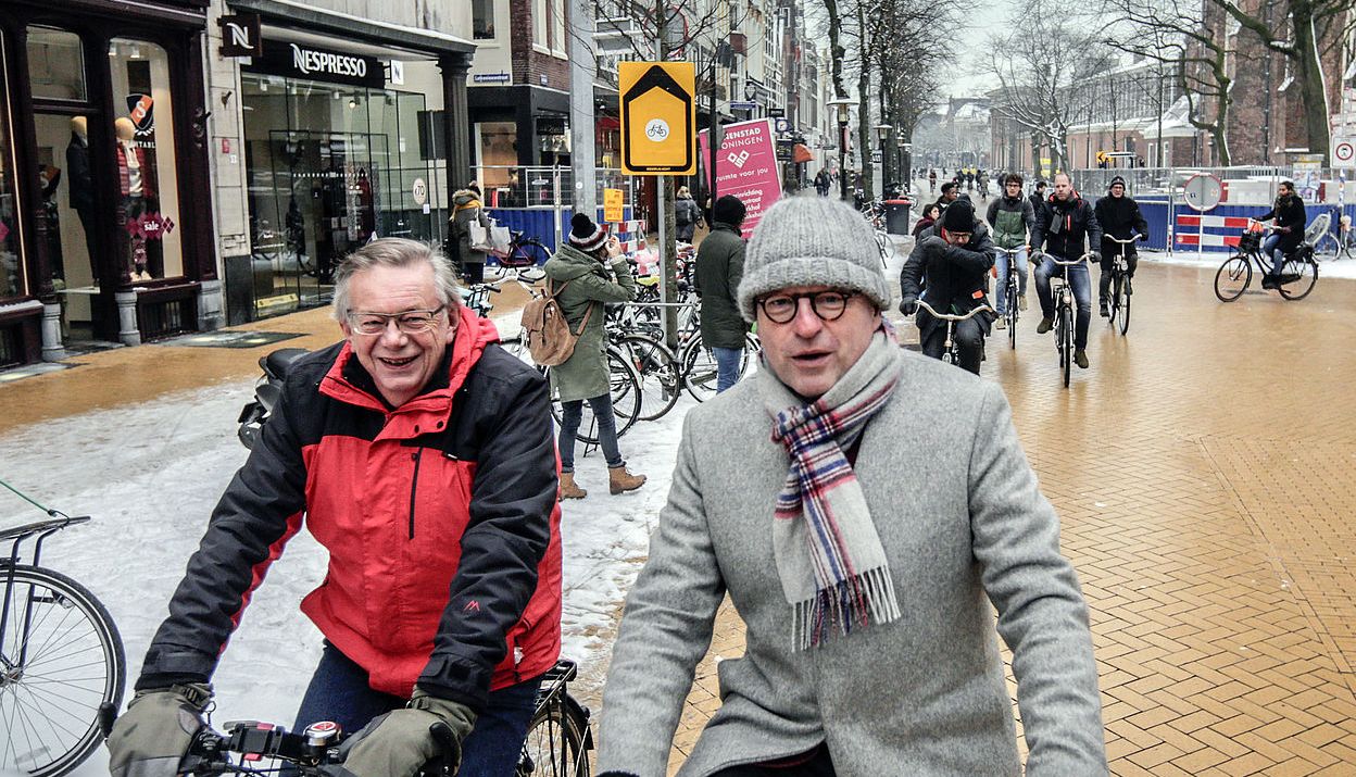 Markus Lewe, burgemeester van Münster en voorzitter van de ‘Deutscher Städtetag’ was afgelopen woensdag in Groningen om zelf te zien hoe Duitse steden fietsvriendelijker kunnen worden: “Ik kan Peter den Oudsten alleen maar feliciteren met de goede fietsinfrastructuur in de Stad.”