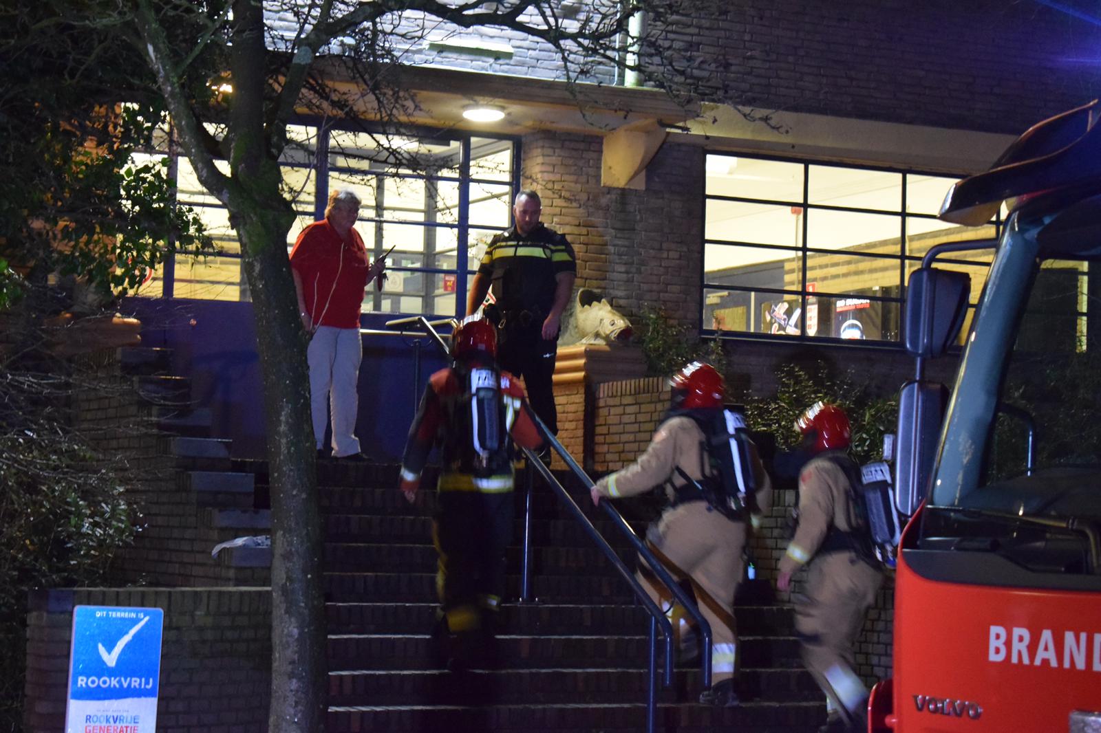 De brandweer ging op onderzoek naar de oorzaak van de vreemde lucht. Alle aanwezigen stonden al dan niet aangekleed buiten te wachten tot het binnen weer veilig was. Een aantal mensen met badjassen aan mocht in de brandweerauto opwarmen.