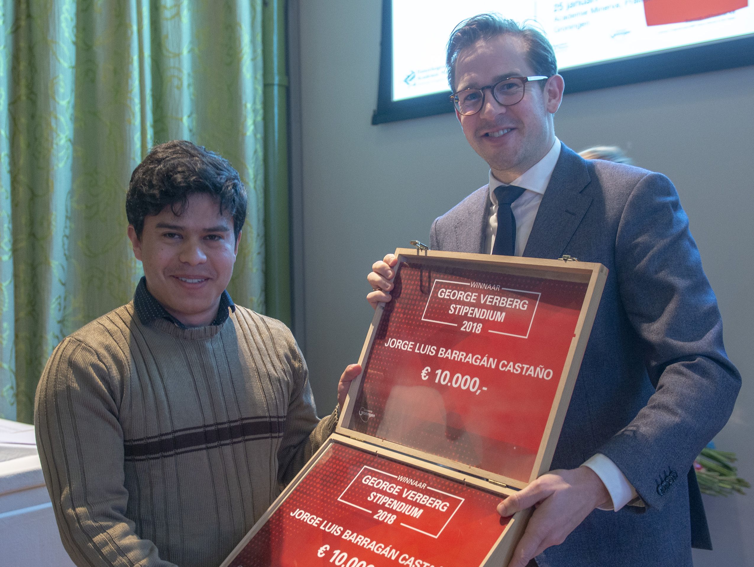 Jorge Luis Barragán Castaño heeft het George Verbergstipendium 2018 gewonnen. De prijs gaat gepaard met een geldbedrag van 10.000 euro. Barragán Castaño kreeg de prijs donderdagmiddag uitgereikt door wethouder Paul de Rook bij de Academie Minerva in Groningen.