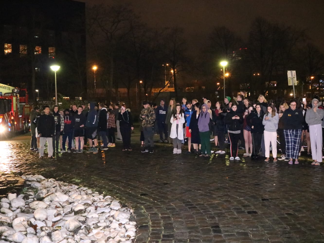 De melding van de brand kwam rond 23.30 uur binnen. “Het brandalarm in het gebouw ging af waarna direct het alarmnummer werd gebeld”, vertelt een woordvoerder van de brandweer. De Groninger brandweer rukte daarop uit met een bluswagen en een hoogwerker. Ook een ambulance kwam uit voorzorg ter plaatse. Bij aankomst stonden de tientallen bewoners buiten al te wachten. “Mijn collega’s hebben direct een verkenning uitgevoerd en daaruit bleek dat het brandalarm was afgegaan omdat er eten was aangebrand.”