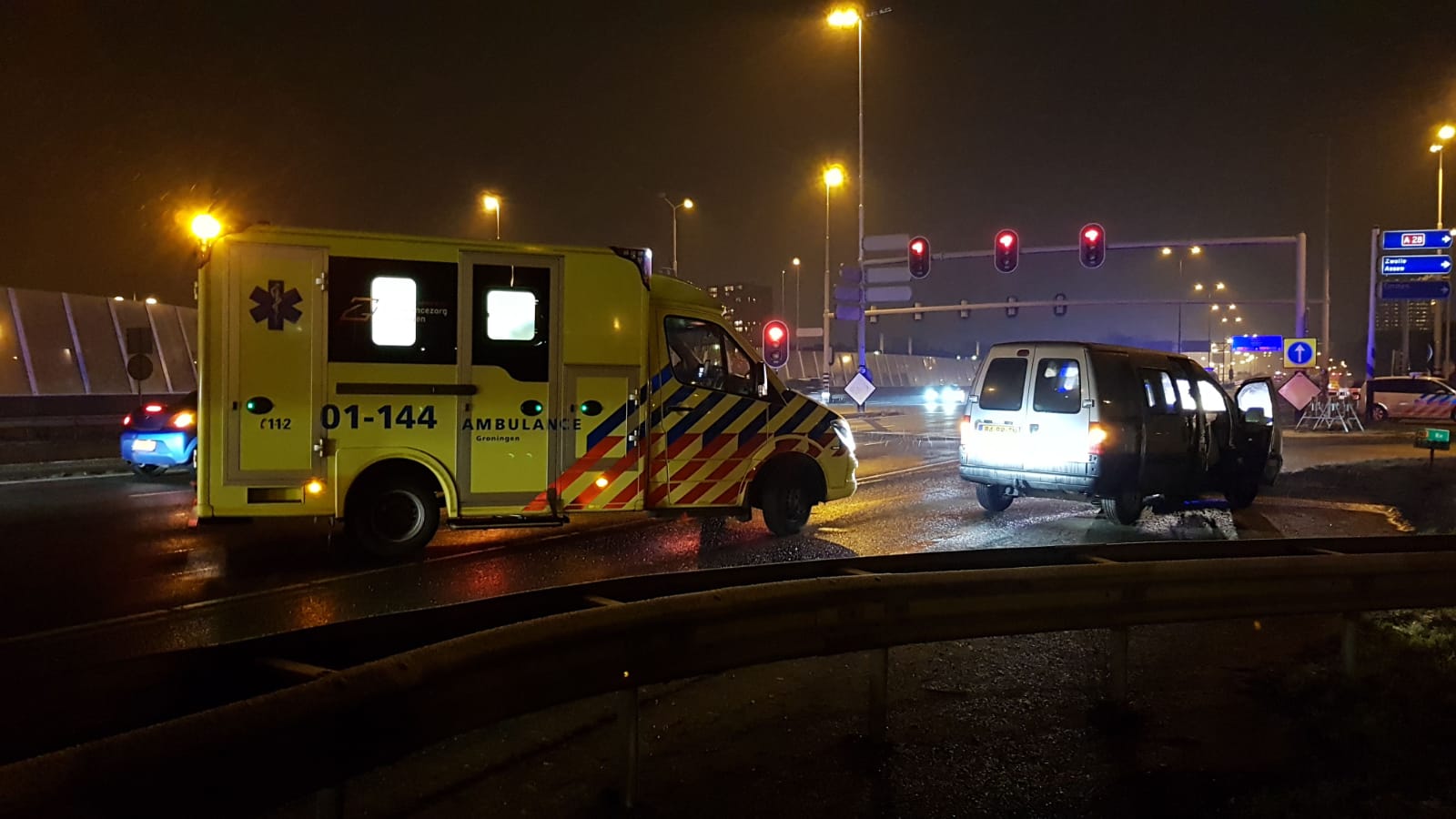Het ongeluk gebeurde rond 19.45 uur. Door nog onbekende oorzaak kwamen een auto en een bestelbusje, die vanaf Hoogkerk in de richting van Winschoten reden, met elkaar in botsing. Om voor hulpverleners een werkruimte te creëren werden er drie rijstroken afgesloten. Hierdoor konden automobilisten geen gebruik maken van de verbindingsweg naar de A28. Ambulancemedewerkers hebben de beide bestuurders van de voertuigen gecontroleerd. Zij zijn daarna meegenomen naar het ziekenhuis.