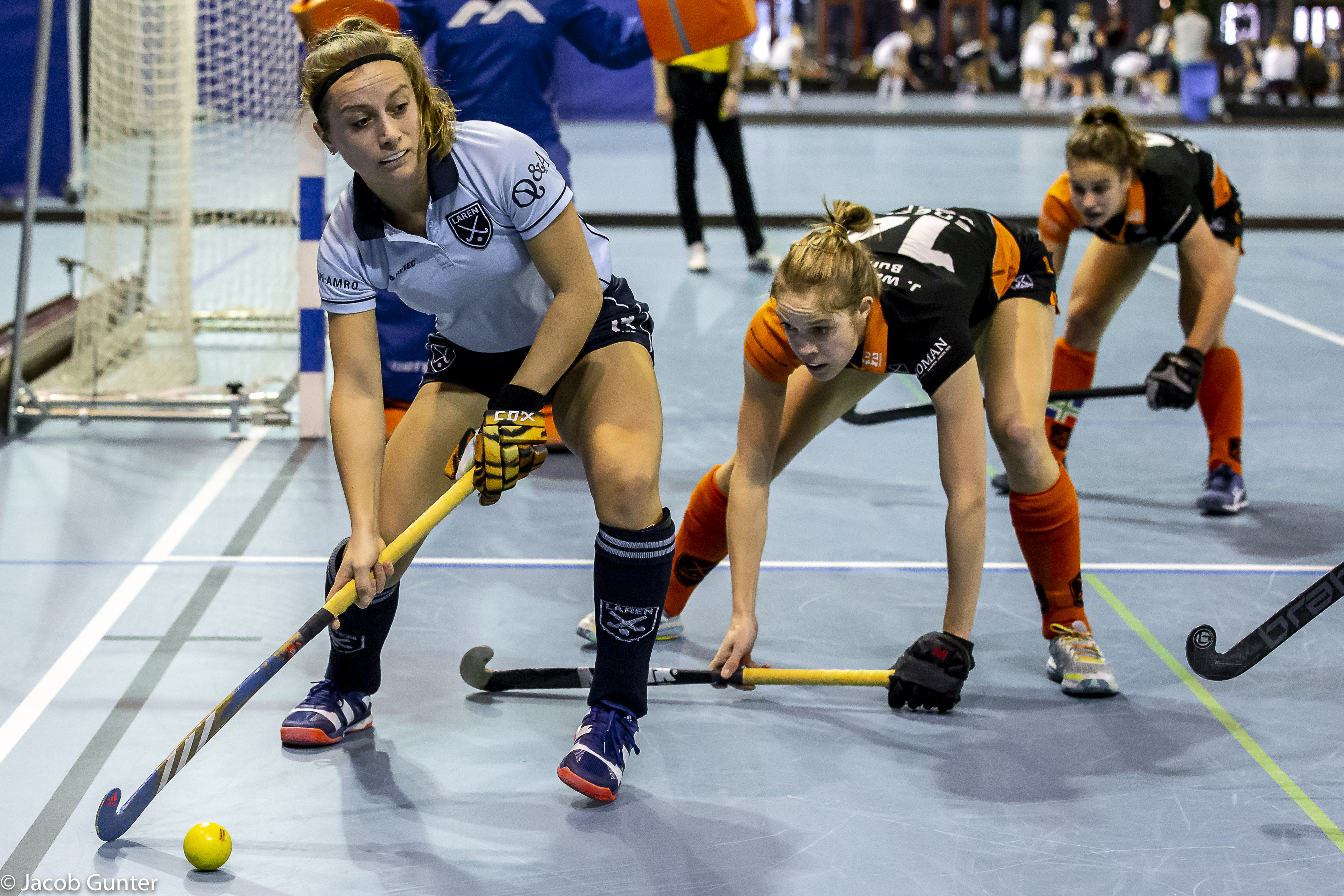 De dames van GHHC wonnen en verloren zaterdag in Eindhoven een wedstrijd in de zaal in de hoofdklasse. GHHC bleef vierde van de zes clubs in de poule.