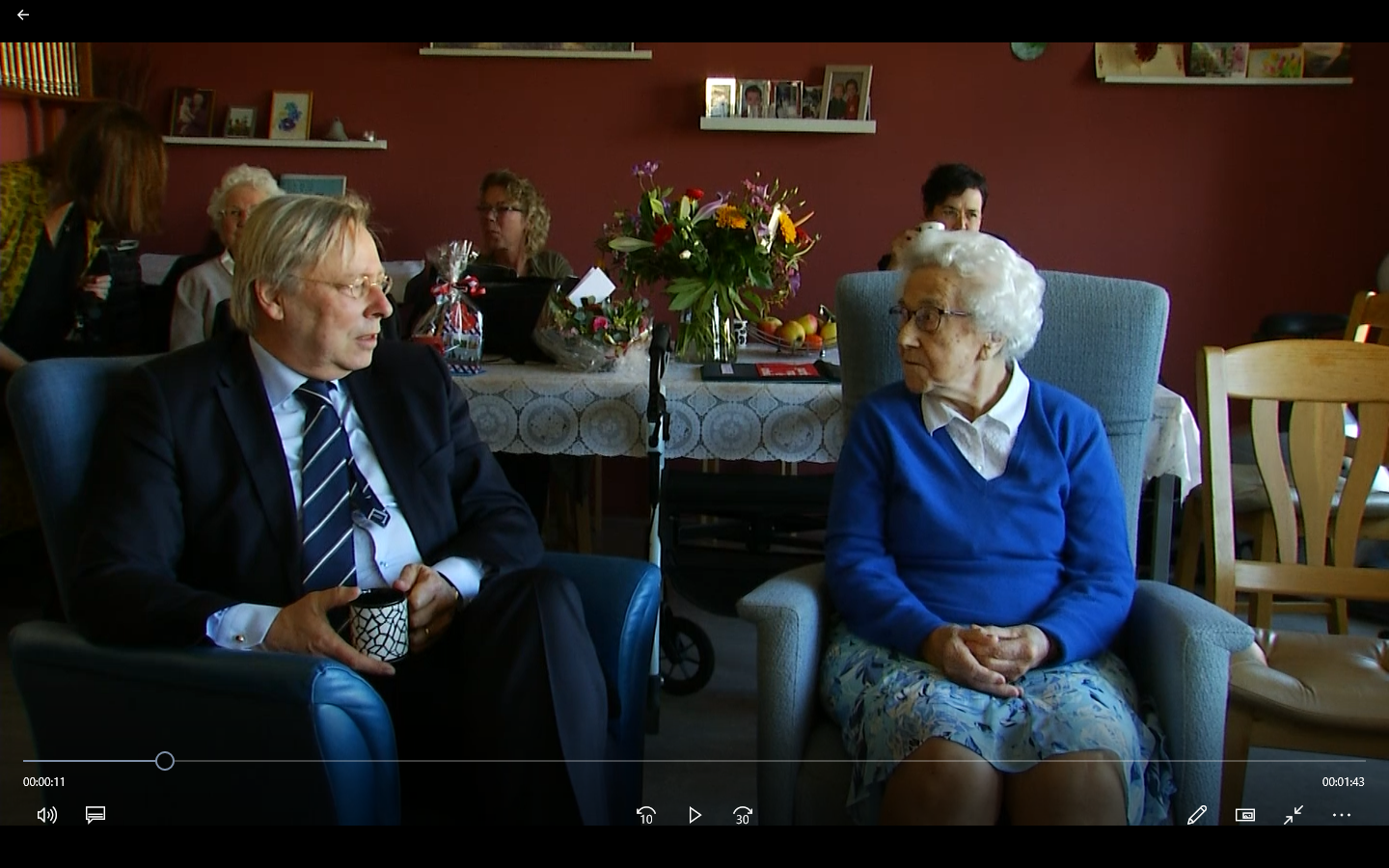 Mevrouw Albertje van der Veer – Melles is deze woensdag 100 jaar geworden. Burgemeester Peter den Oudsten kwam langs en gaf ook even zijn felicitatie. Sinds korte tijd woont mevrouw aan de Molukkenstraat.