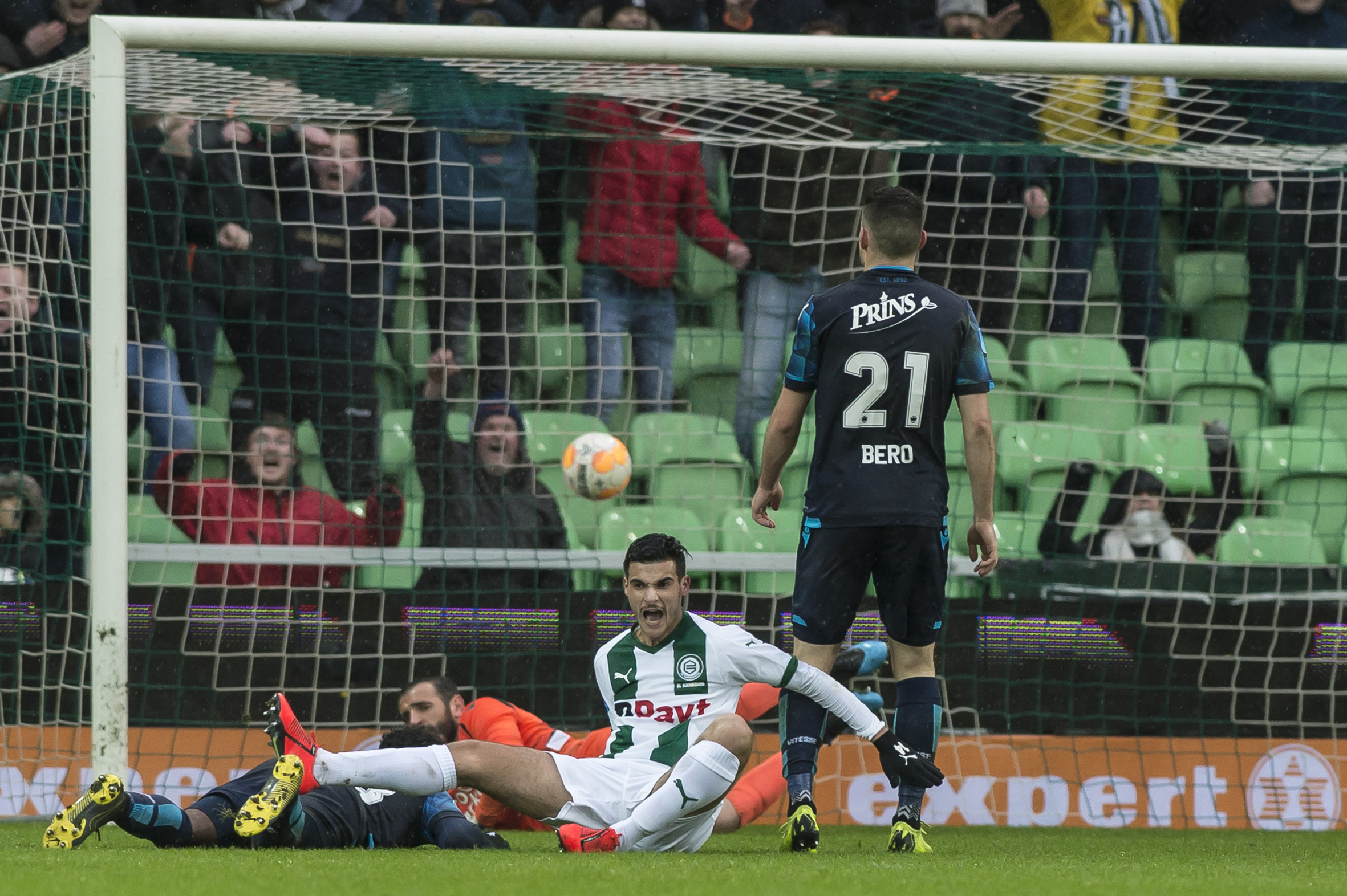 Foto: Jannes Veenstra Sportphotoagency.com Mo El Hankouri van FC Groningen heeft zojuist de winnende gemaakt tegen Vitesse
