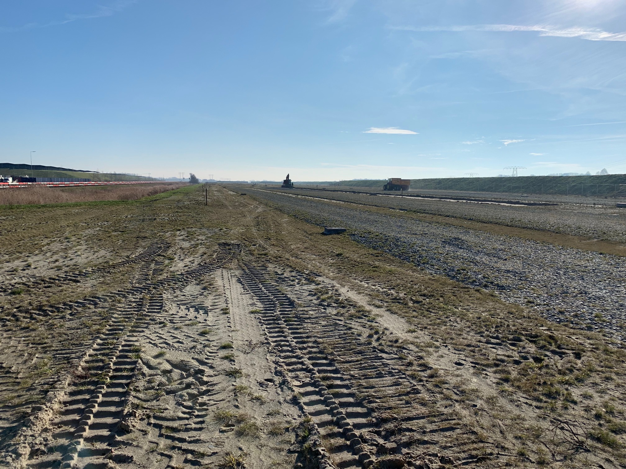 Op het nieuwe rangeerterrein De Vork wordt deze periode druk gewerkt. Over een jaar moeten de eerste treinen er geparkeerd kunnen worden.