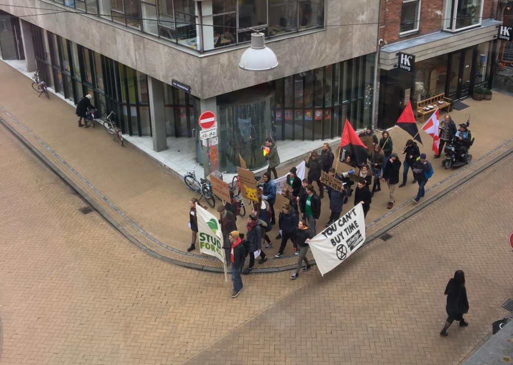 Ongeveer dertig mensen demonstreerden donderdag in de Groninger binnenstad voor een beter klimaat.