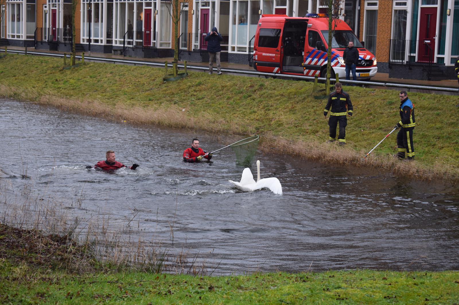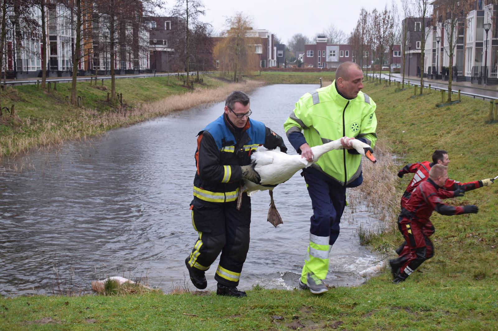 Hulpverleners hebben vrijdagmiddag een gewonde zwaan gered uit het water aan de Belcamposingel in de wijk Helpermaar. Dat melden verschillende incidentenwebsites.