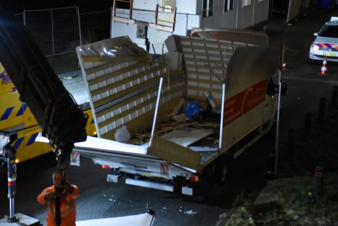 “De man was uit Rotterdam naar de stad komen rijden om een lading op te halen”, vertelt incidentfotograaf Martin Nuver. “Naar alle waarschijnlijkheid is hij in de stad de weg kwijt geraakt en op de Eltjo Ruggeweg terecht gekomen. Daar wilde hij onder de Berlagebrug doorrijden maar die brug bleek te laag voor de bestelwagen.” Het gevolg was dat de laadruimte van de wagen zwaar beschadigd raakte. De bestuurder kwam er zonder verwondingen van af.