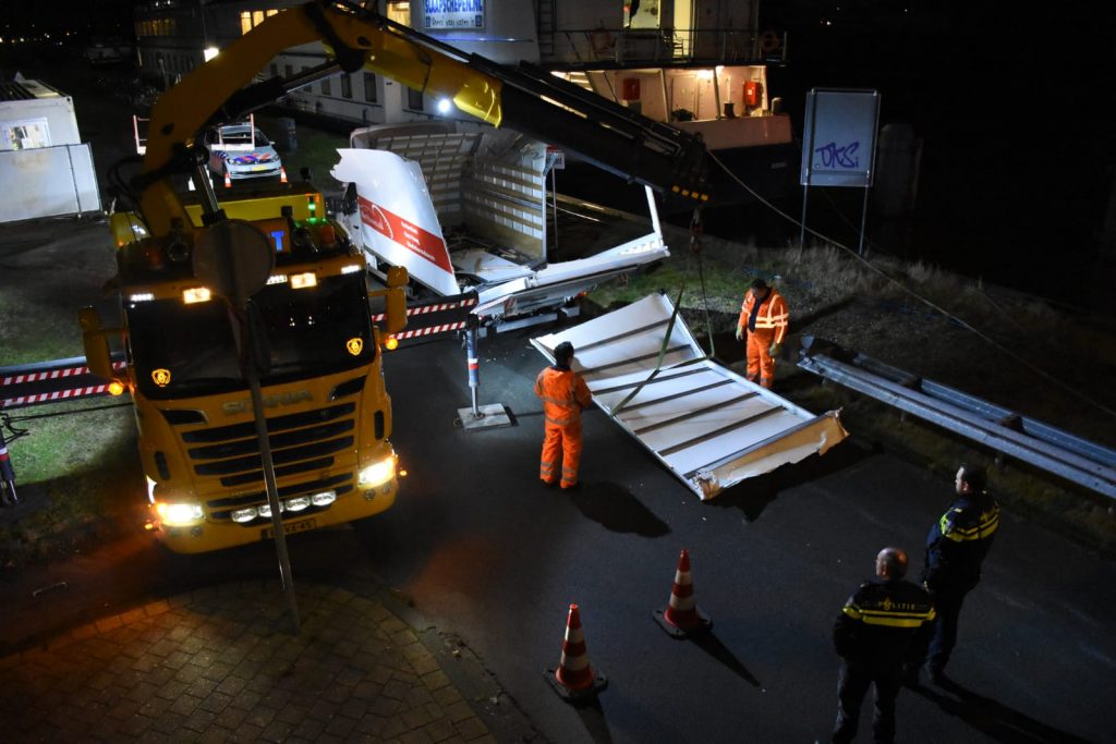 Een bergingsbedrijf heeft het vehikel geborgen en vervolgens weggesleept. De onfortuinlijke bestuurder is naar het Hoofdstation gebracht waar hij op de trein naar Rotterdam is gezet.