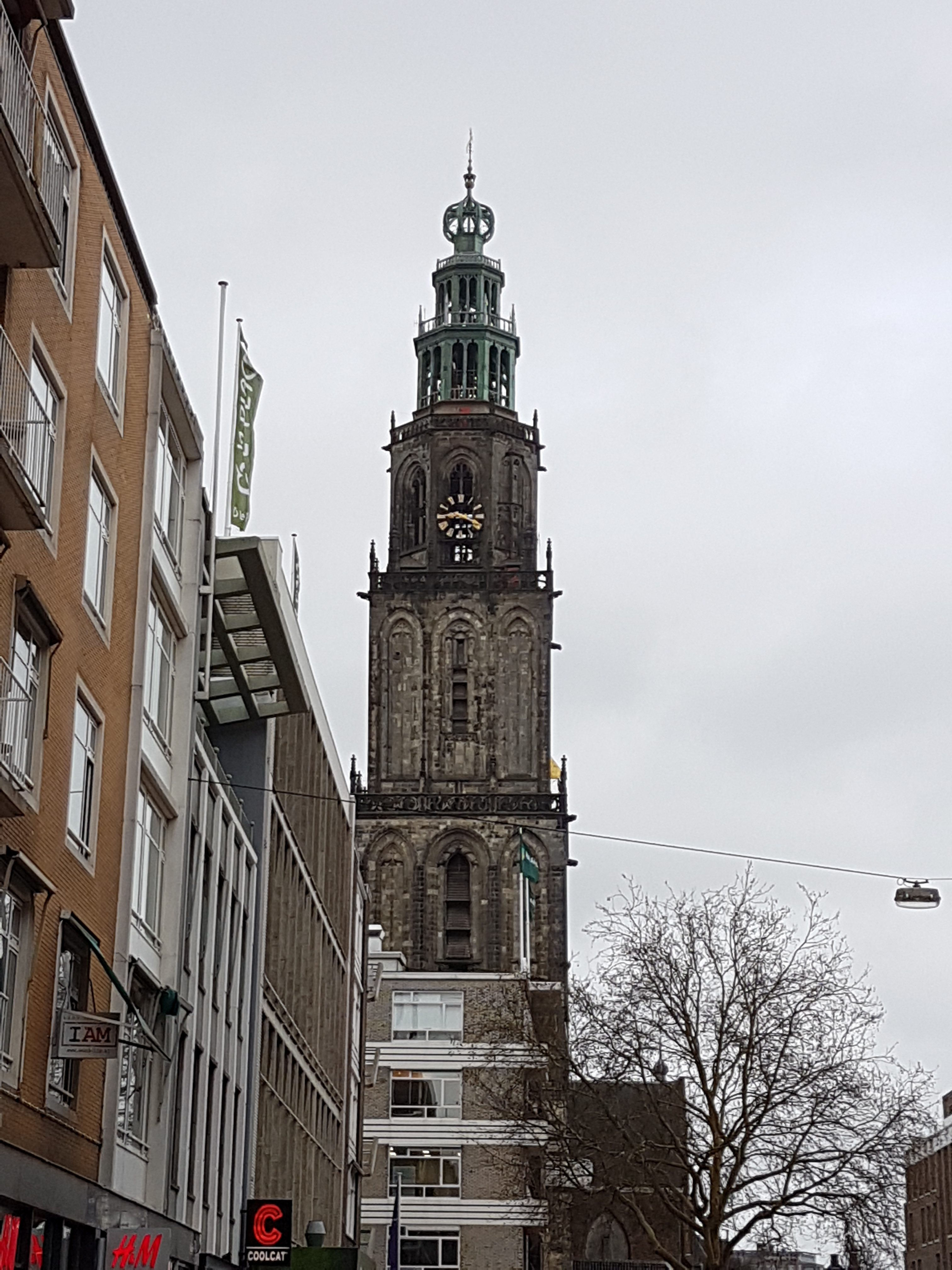 Als je vanaf de H&M aan de Grote Markt naar d’Olle Grieze kijkt, dan zie je de stilstaande klok. De andere klokken kloppen wel.