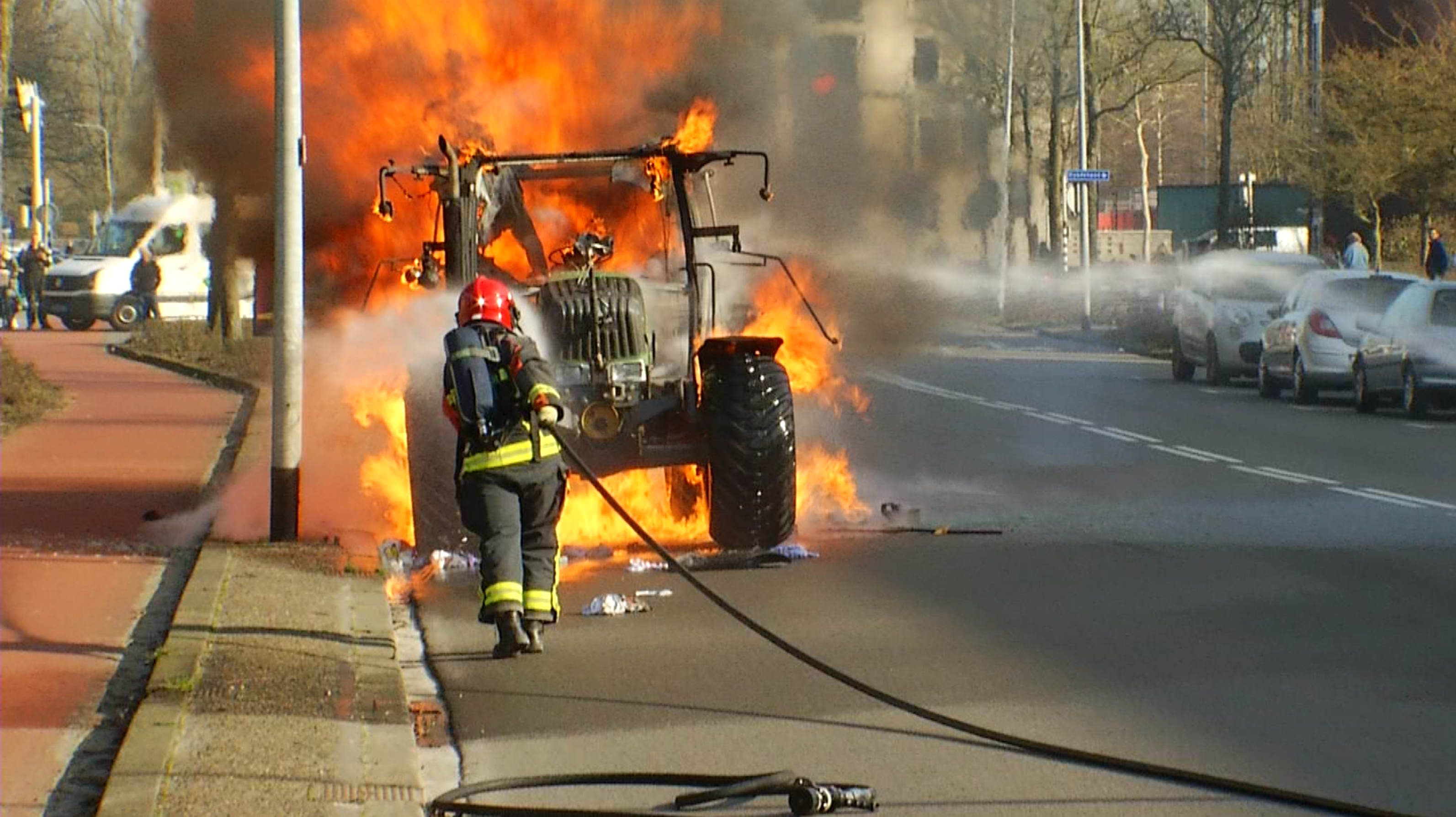 De brandweer heeft de brand geblust, maar de tractor kan als verloren beschouwd worden.