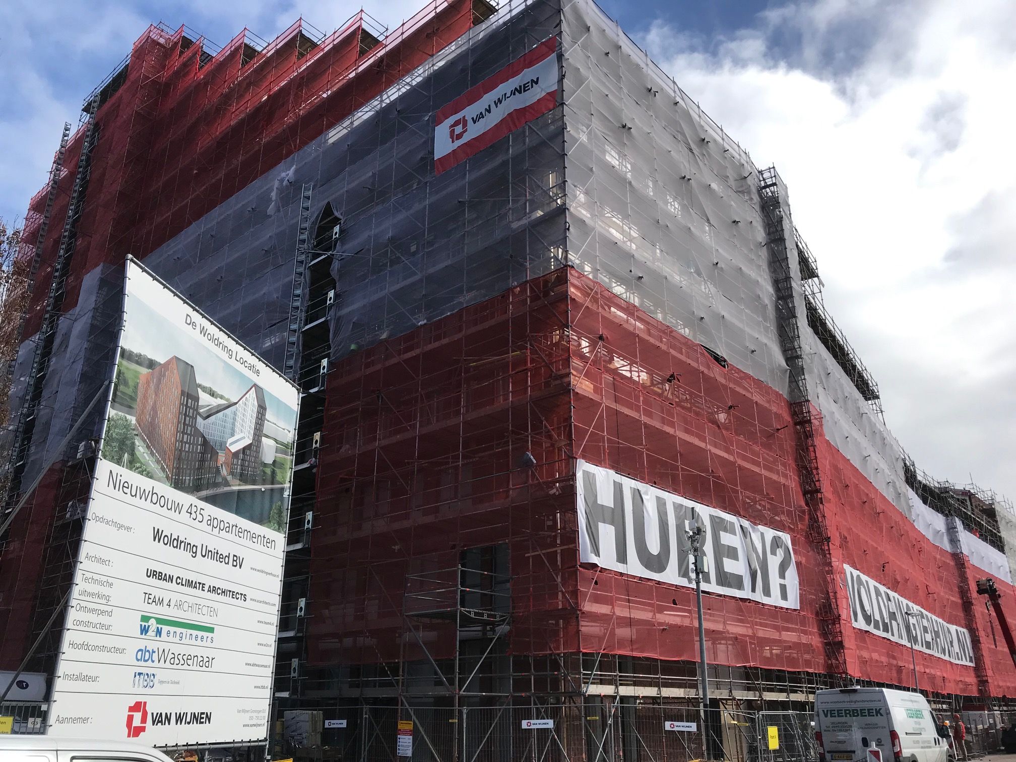 Vrijdagmiddag is het hoogste punt bereikt van het jongeren-wooncomplex ‘De Woldring’ aan de Friesestraatweg in Groningen.