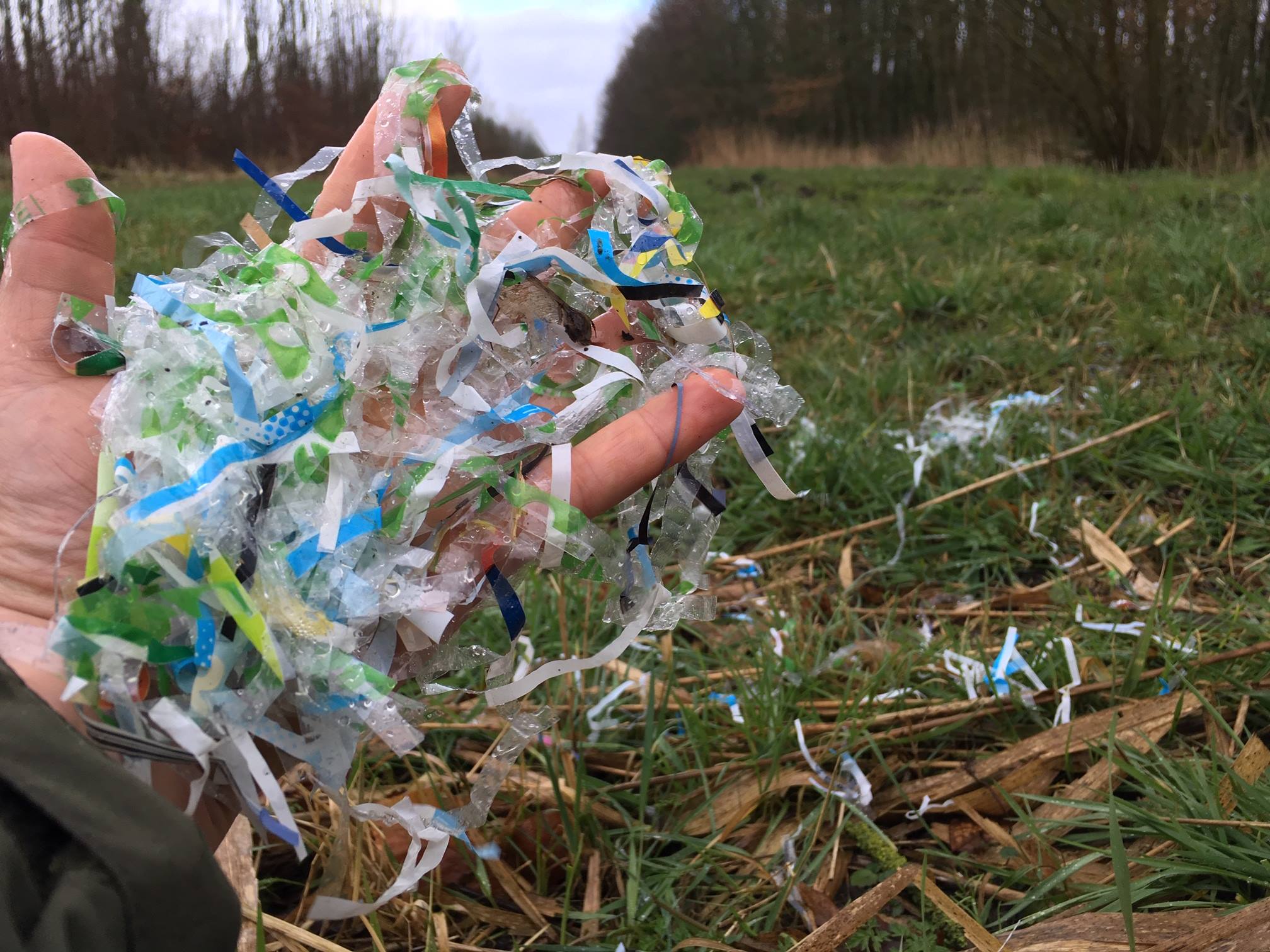 Natuurmonumenten is verbaasd en bedroefd: honderdduizenden plastic sliertjes zijn verspreid door het Beijumerbos.