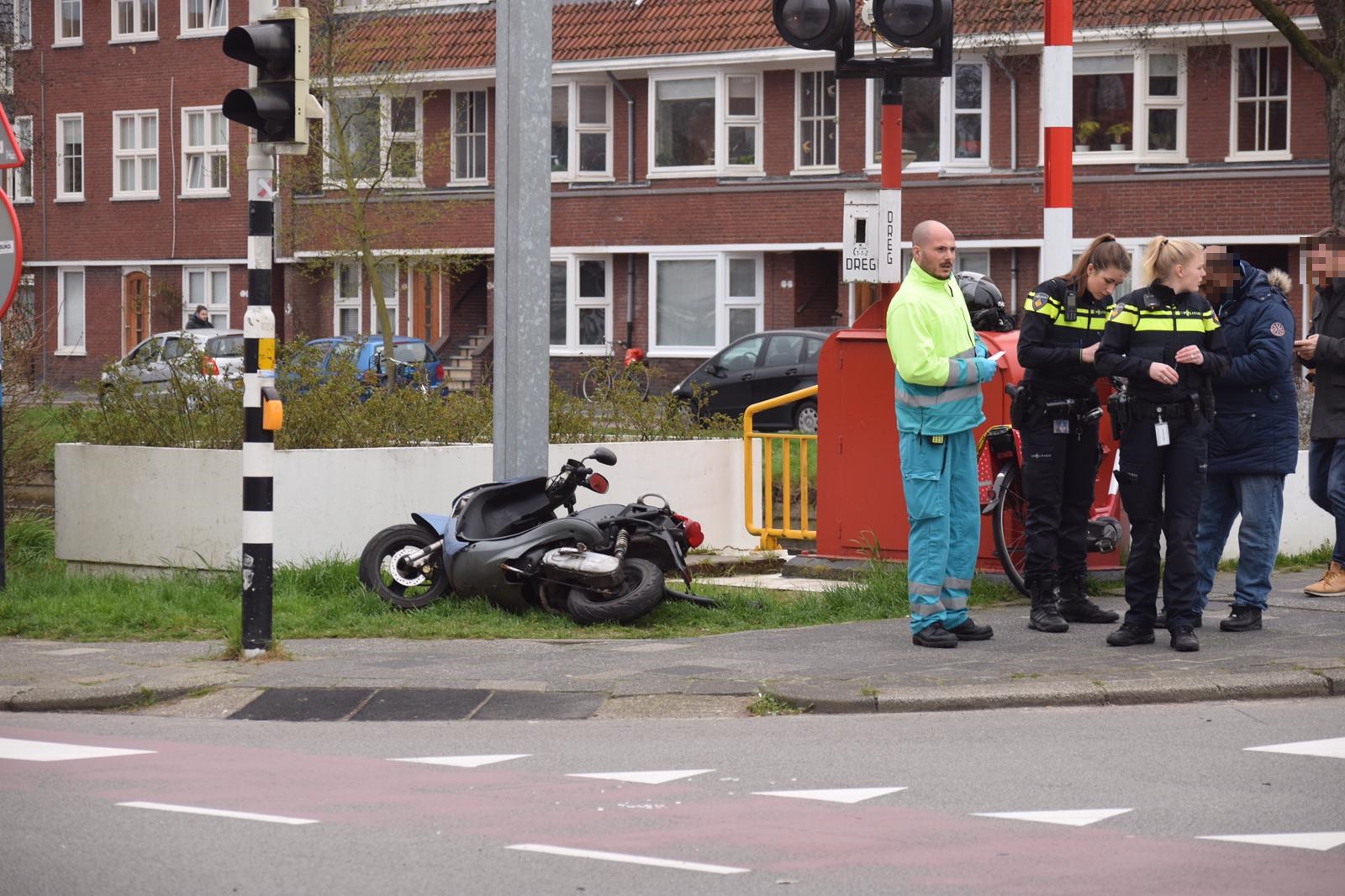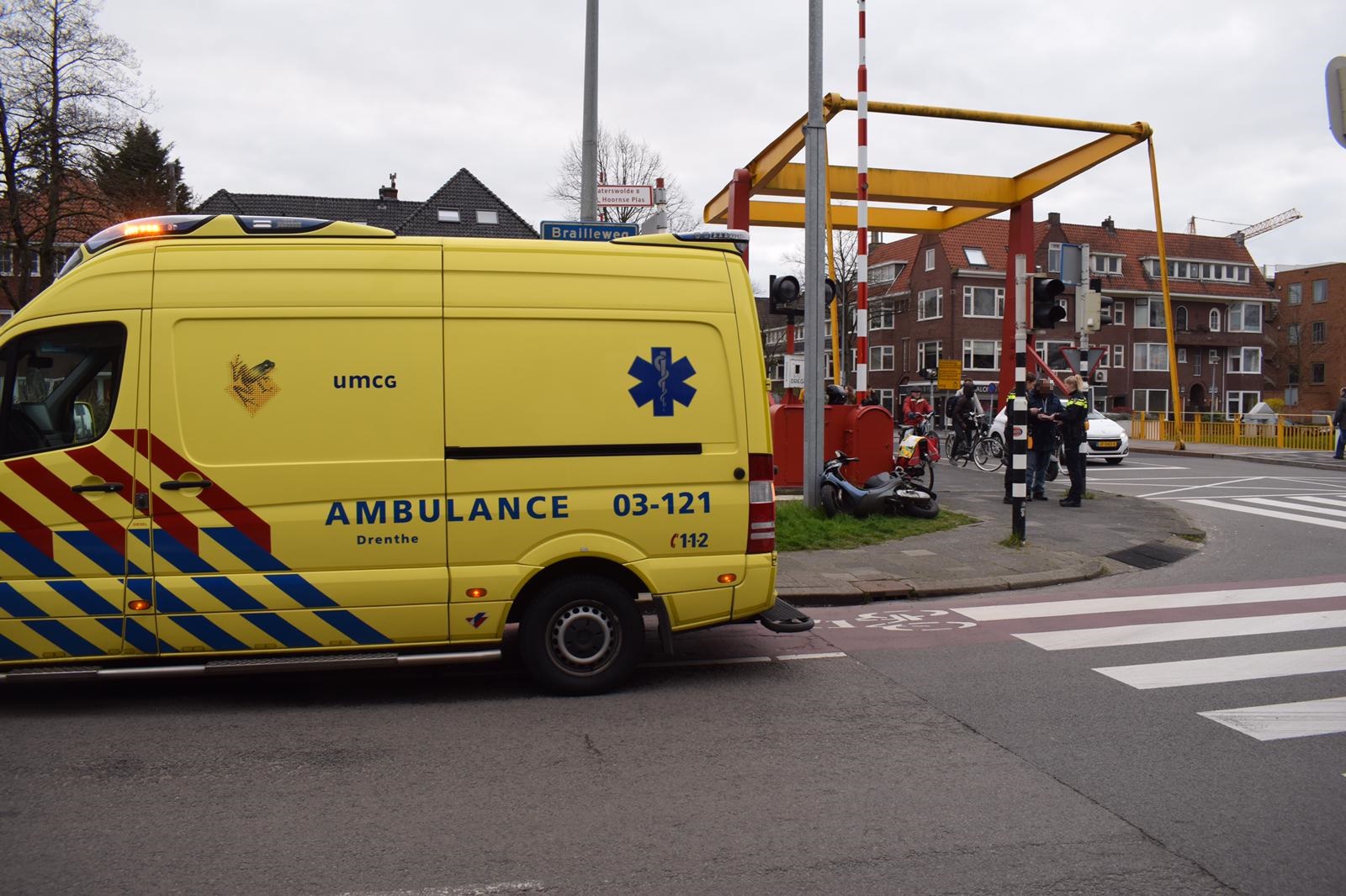 Het ongeluk gebeurde aan het einde van de middag op de kruising Parkweg met de Brailleweg. “Door nog onbekende oorzaak zijn een fietser en een scooterrijder met elkaar in botsing gekomen”, vertelt Ten Cate. “De fietser is daarbij ten val gekomen en gewond geraakt.” Hulpverleners waaronder een ambulance en de politie waren snel ter plaatse. “Het slachtoffer is in de ziekenauto behandeld. Het is onbekend of hij is overgebracht naar het ziekenhuis.”