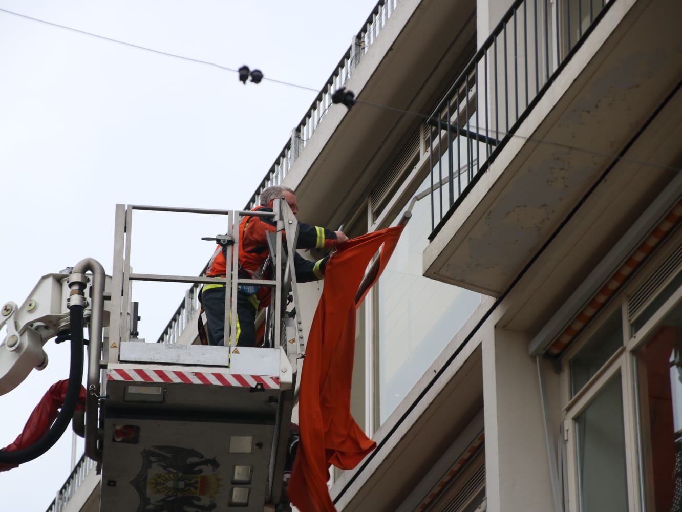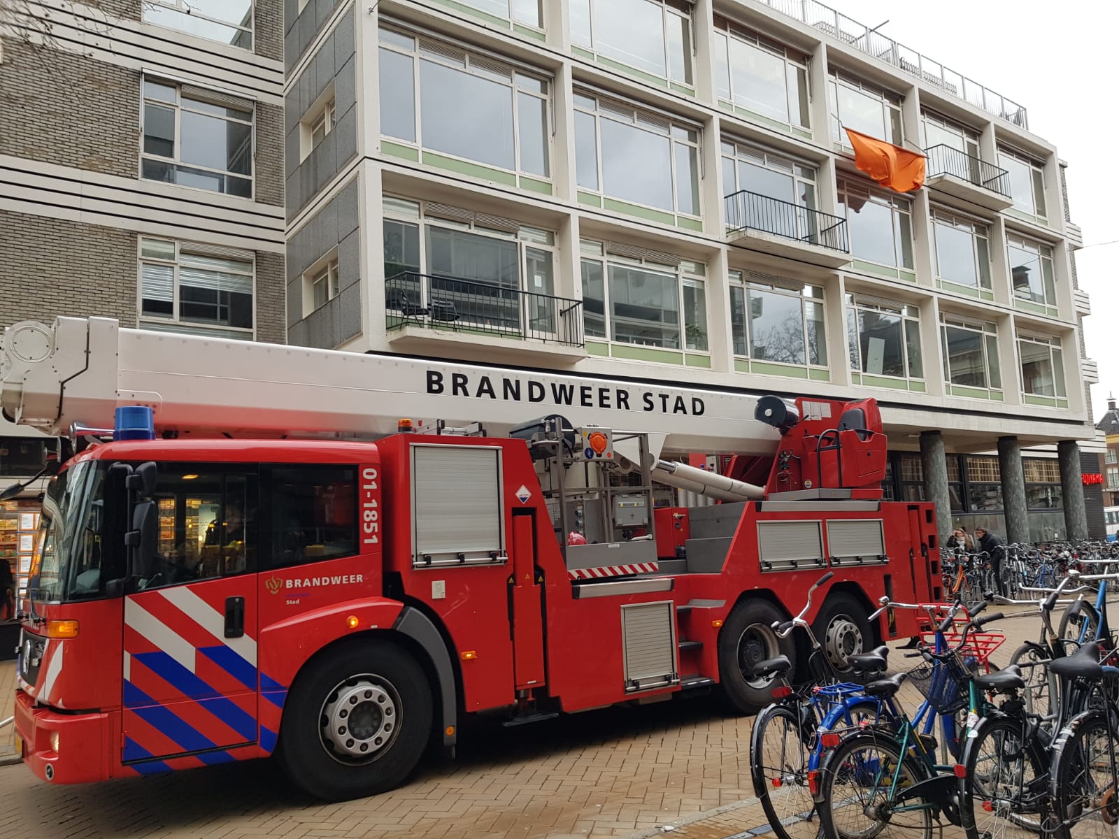 De melding van een stormschade kwam rond 15.30 uur bij de hulpdiensten binnen waarop de hoogwerker van de brandweer ter plaatse werd gestuurd. “Op de bovenste verdieping van een gebouw aan het plein is een zonnescherm los komen te zitten”, ziet Wind die ter plaatse is. “Het scherm is waarschijnlijk door de harde wind losgeraakt en dreigt nu naar beneden te vallen.” Bij aankomst van de brandweer heeft men allereerst een verkenning gedaan. “Uiteindelijk besloot men om de hoogwerker in positie te brengen om vervolgens via de korf het scherm los te maken en naar beneden te halen waarmee de situatie weer veilig was.”