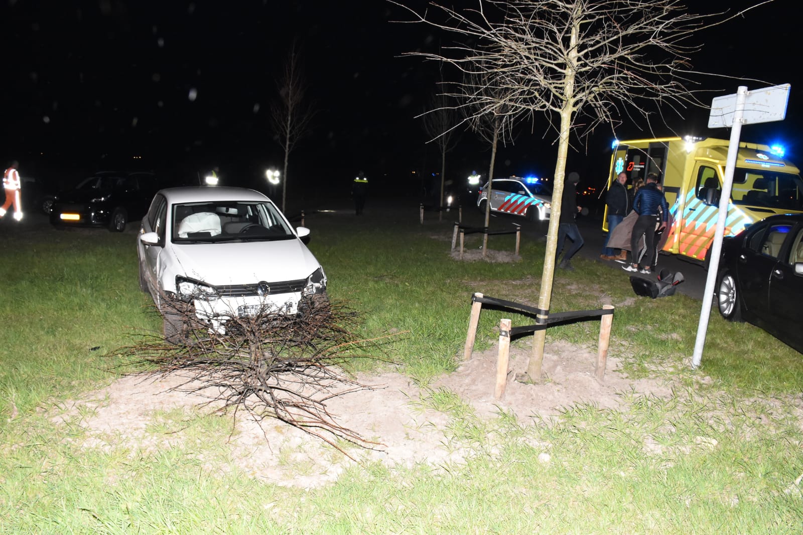 Op de Noodweg bleek de bestuurder een boompje geraakt te hebben. De bestuurder had verwondingen opgelopen en is in een ambulance gecontroleerd. Daarna is het slachtoffer overgebracht naar het ziekenhuis. De personenauto is door een bergingsbedrijf geborgen. Naar de oorzaak van het ongeluk wordt onderzoek gedaan.