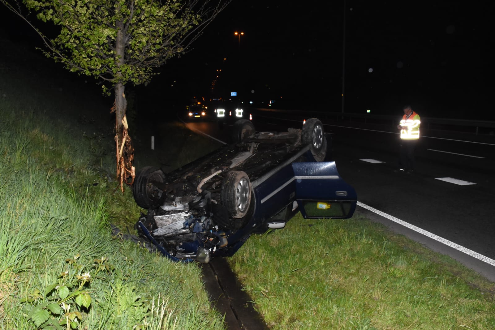 Bij een verkeersongeluk op de N46, de oostelijke ringweg, is in de nacht van maandag op dinsdag een auto op zijn kop beland. Dat meldt Martin Nuver van de incidentenwebsite 112groningen.nl.