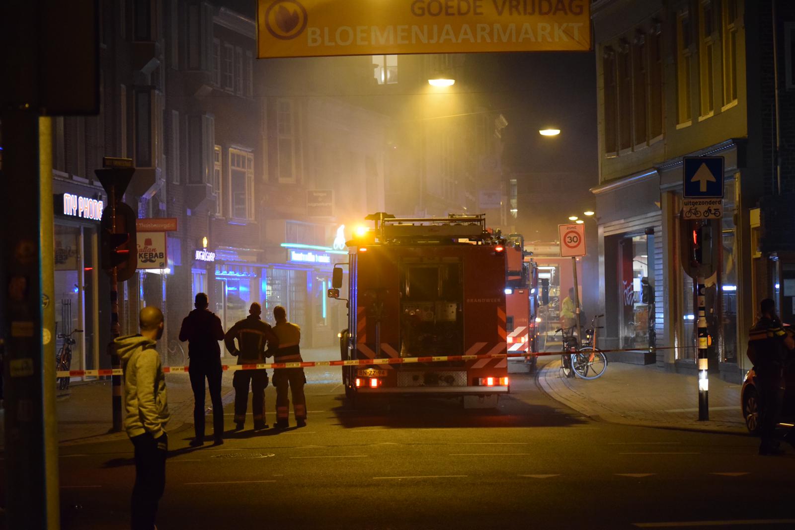 De melding van de brand kwam rond 22.55 uur binnen waarop de brandweer uitrukte met twee bluswagens en een hoogwerker. “In de straat staat flink wat rook”, zag incidentfotograaf Rick ten Cate van tencatefotografie.nl. “De straat tussen de Ebbingebrug en de kruising met de Hofstraat is door de hulpdiensten afgezet.” Volgens 112groningen.nl woedde de brand in een woning op de bovenste verdieping boven een winkel. Het vuur kon door middel van een binnenaanval snel bedwongen worden.