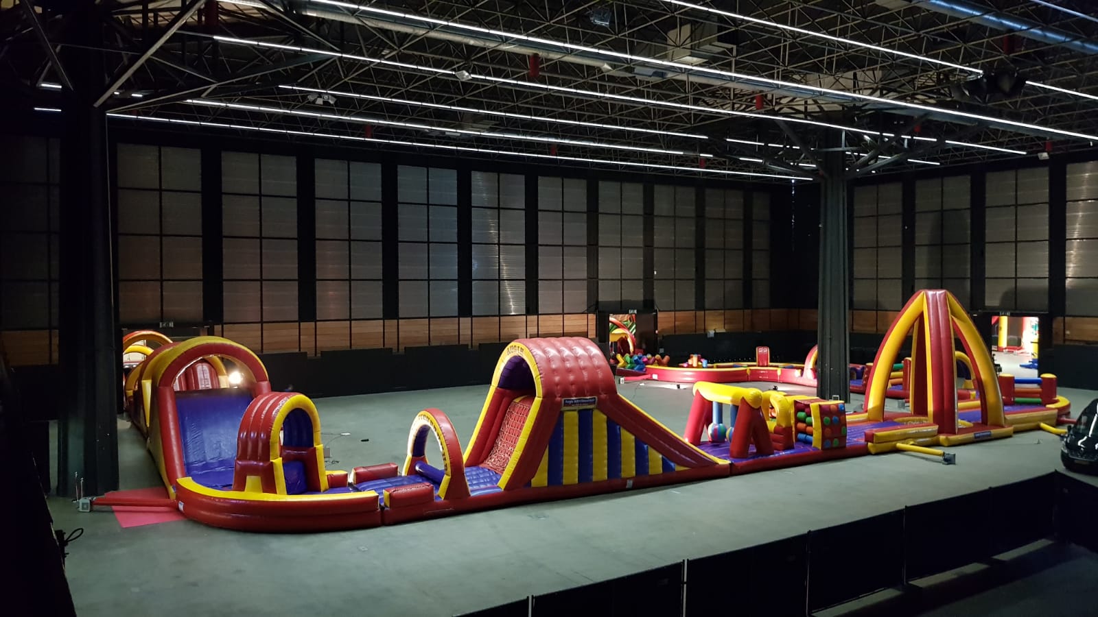 De stormbaan bestaat uit aan elkaar geregen luchtkussens en hebben verschillende thema’s. Aan de veiligheid wordt voldoende gedacht, luchtkussens en matten vallen de eventuele val op en ook zijn er voldoende toezichthouders aanwezig.