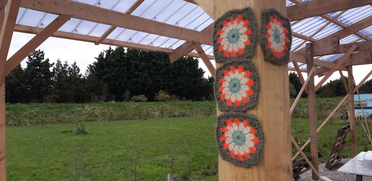 Tuin in de Stad is na de gedwongen verhuizing en na dik twee jaar bouwen klaar om de activiteiten weer op te starten. Cursussen, maaltijden, tuinactiviteiten en nu dus ook een camping. Naast de parkeerplaats aan de Tarralaan in het Westpark staat nu een flink gebouw van stro & leem en een heleboel andere hergebruikte materialen.