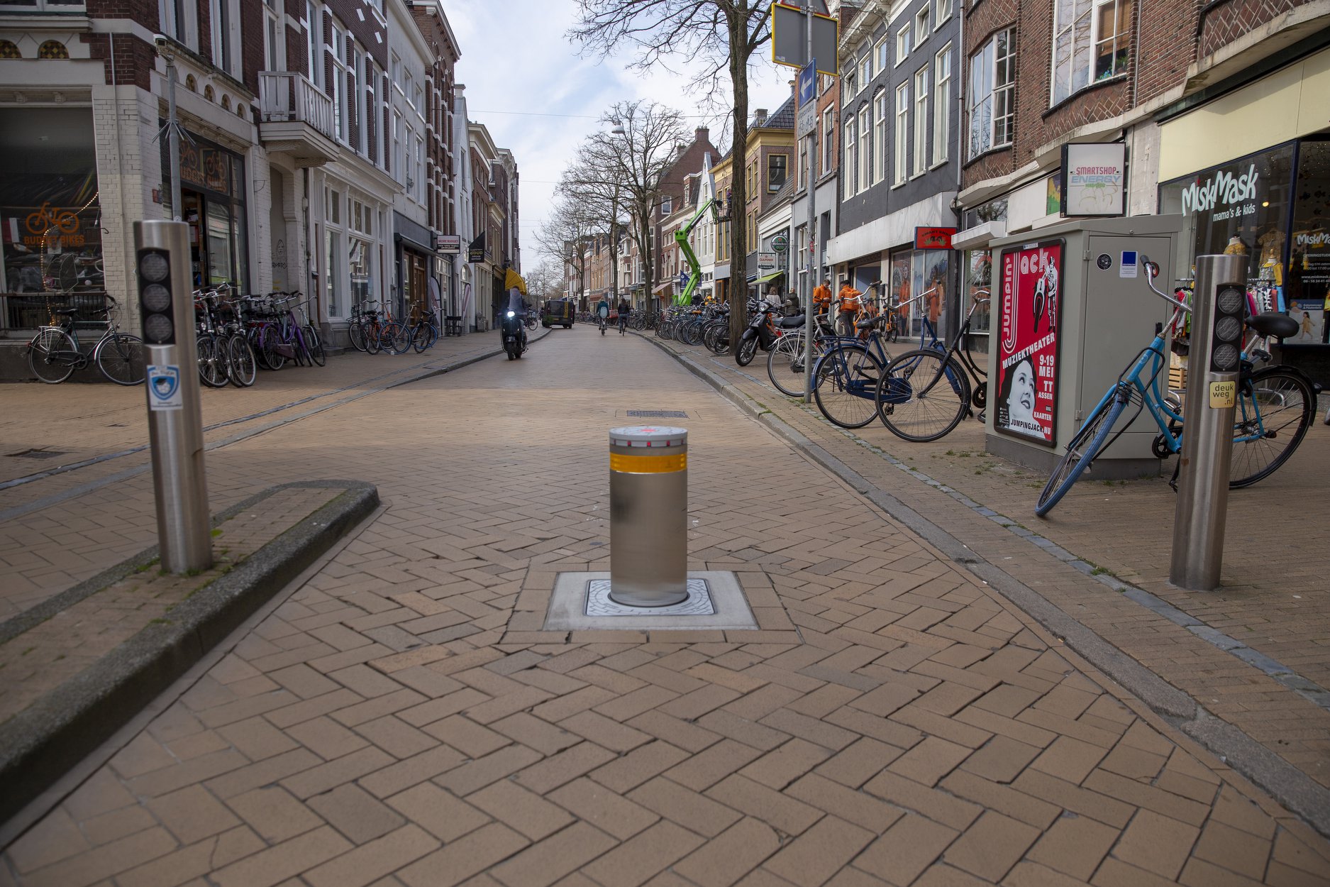 ‘Het paaltje is geplaatst en voorkomt dat auto’s buiten de venstertijd tussen 5:00 en 12:00 uur vanaf Damsterdiep / Schuitendiep de straat in rijden. Veel weggebruikers gebruikten de straat steeds vaker als sluiproute’, schrijft de gemeente.