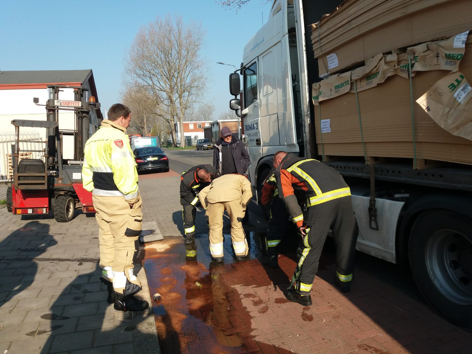 Een vrachtwagen lekte maandagochtend diesel in de van der Hoopstraat op industriegebied de Hoogte.