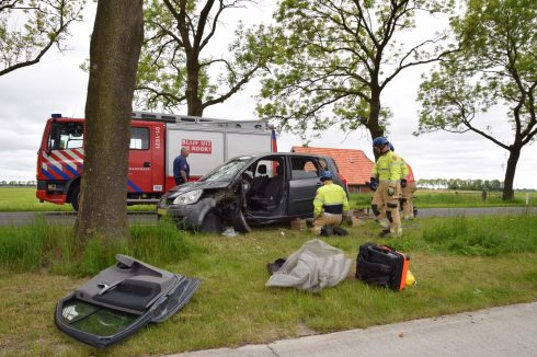 Auto botst tegen boom in Zuidwolde: bestuurder bekneld