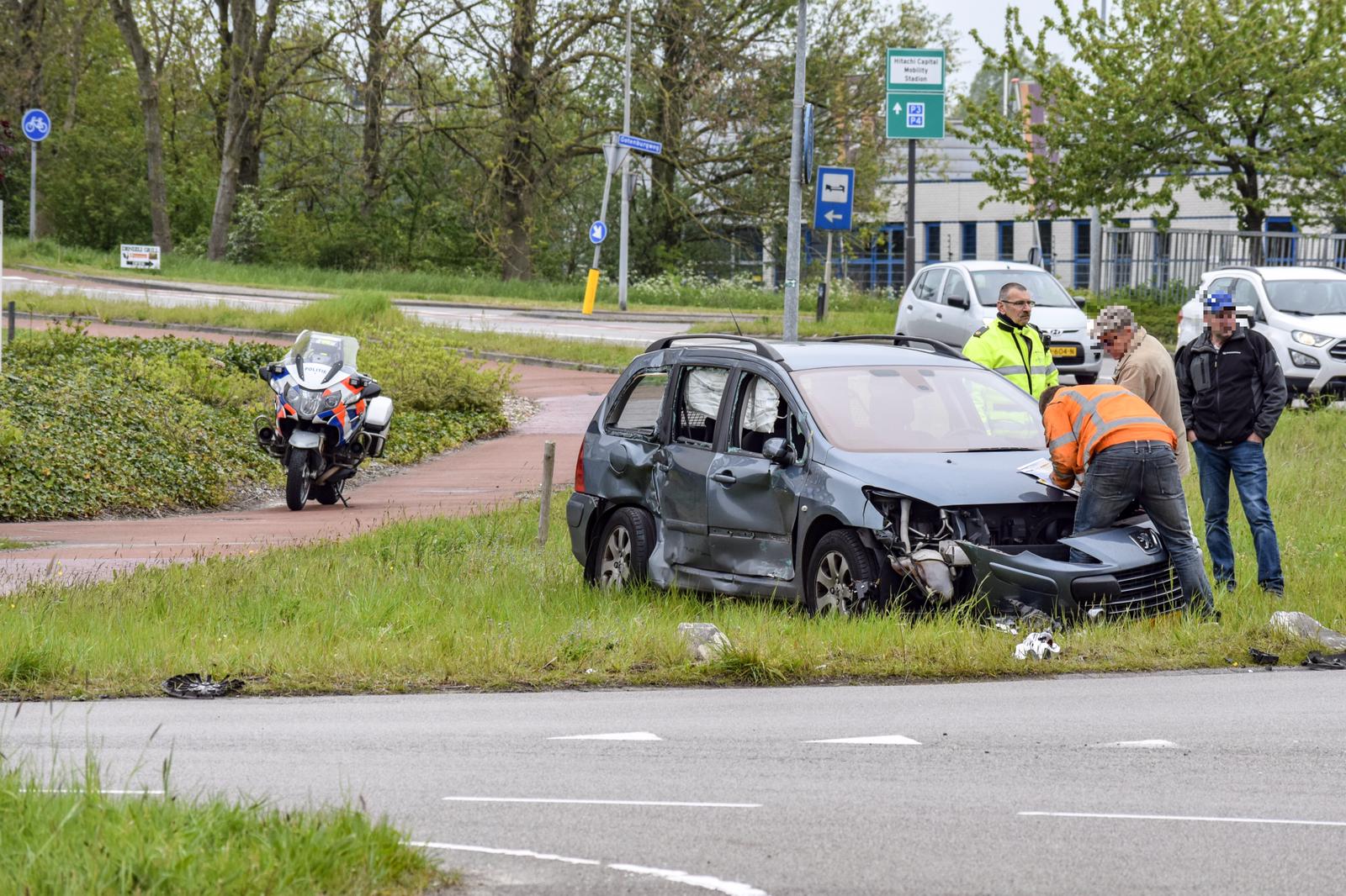 Een bergingsbedrijf heeft de beschadigde personenauto weggesleept.