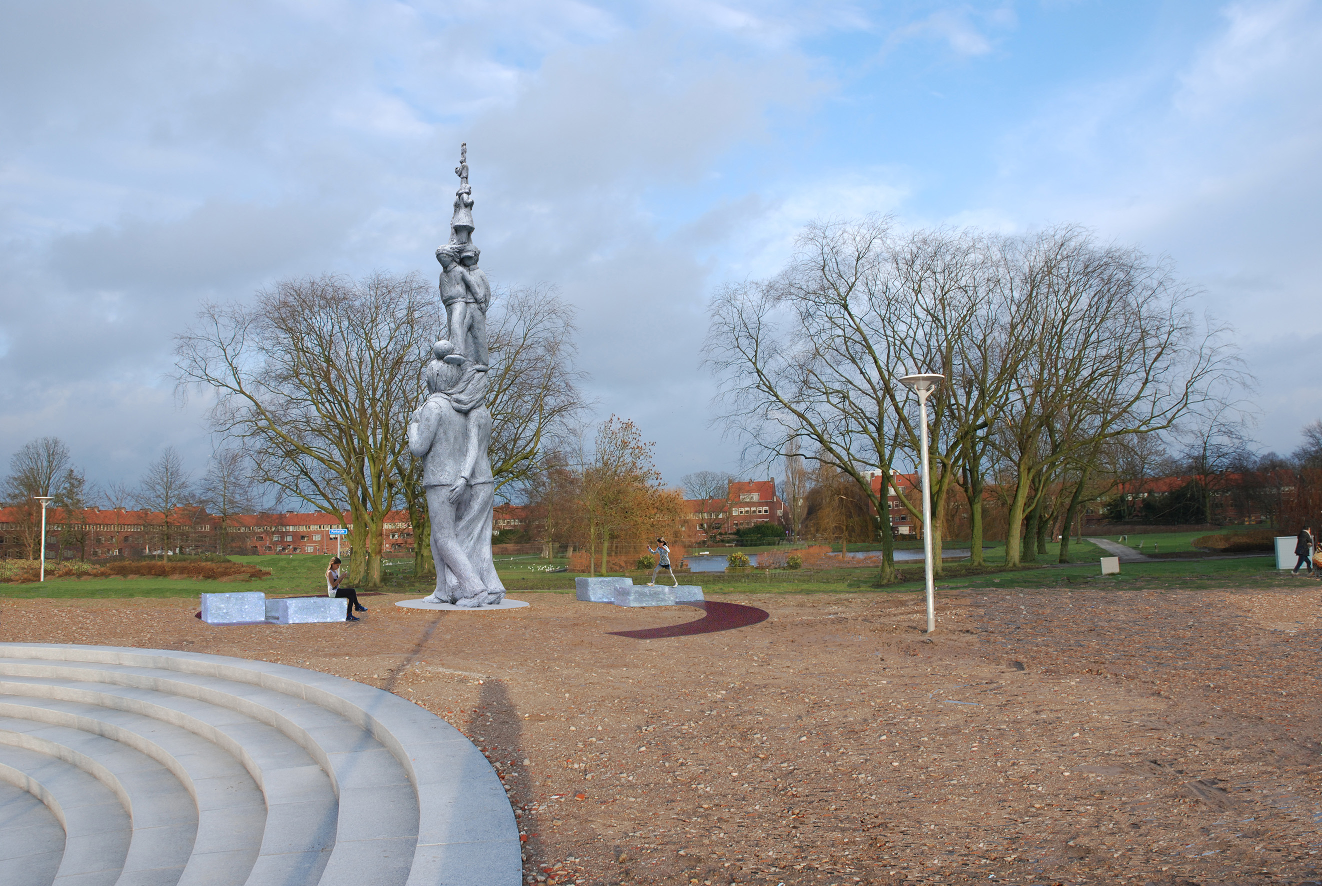 Het kunstwerk heet De Figuurtoren en staat bij de nieuwe vijver aan de Piet Fransenlaan. Het werk is een opeenstapeling van mensfiguren die naar boven toe steeds kleiner worden. Met twee halve cirkels en blokken creëert de kunstenaar een zitplek aan de voet van de sculptuur.