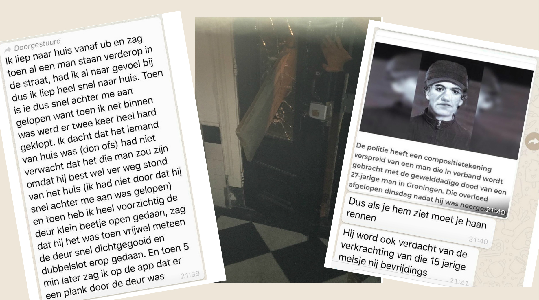 Dergelijke WhatsApp-berichten kwamen ook terecht bij medewerkers van OOG. Zo werd melding gemaakt dat iemand werd achtervolgd en dat er later een plank door de ruit van de deur heen geslagen was. Volgens de politie is dat inderdaad vorige week woensdagavond gebeurd, een dag na de moord. “Of er een verband is tussen de zaken weten we niet, dat wordt nog uitgezocht”, aldus politiewoordvoerder Ernest Zinsmeijer. “Maar het is geen nepnieuws. Het is één van de tips in de zaak. We zijn er druk mee bezig en we krijgen elke dag nog reacties”.