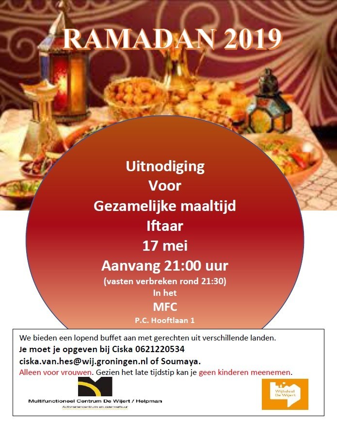 Vrijdag 17 mei organiseren moslima’s uit De Wijert een maaltijd tijdens de Ramadan voor alle vrouwen uit De Wijert.