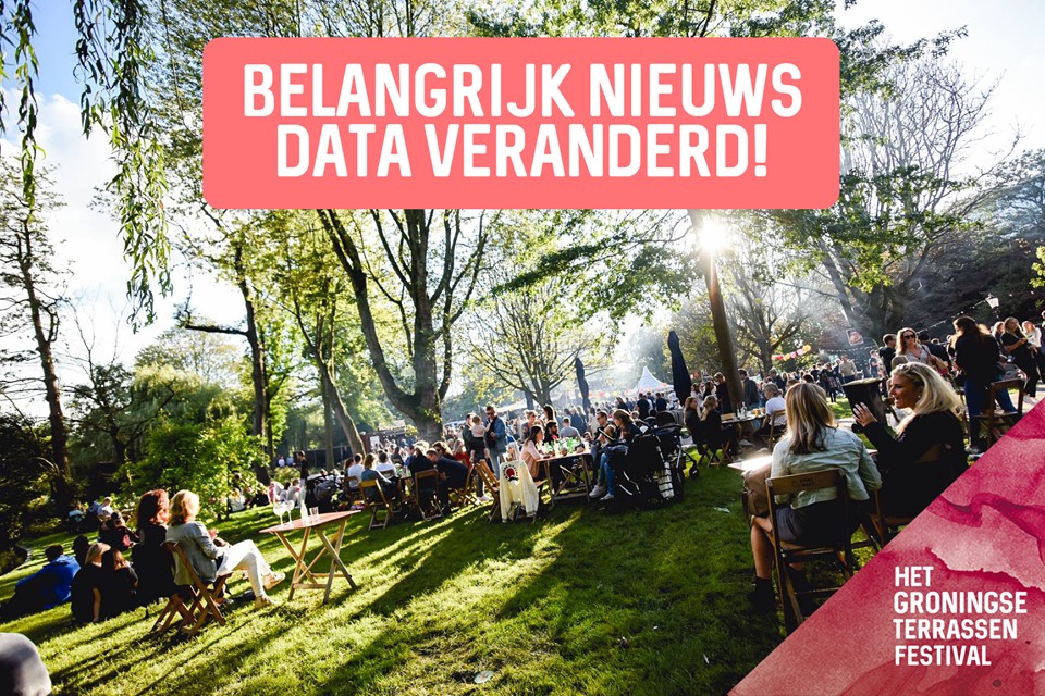 Het eerste Groningse Terrassen Festival dat van woensdag 29 mei tot en met zondag 2 juni in het Stadspark zou plaatsvinden is uitgesteld vanwege het voorspelde slechte weer in het Hemelvaartweekend.