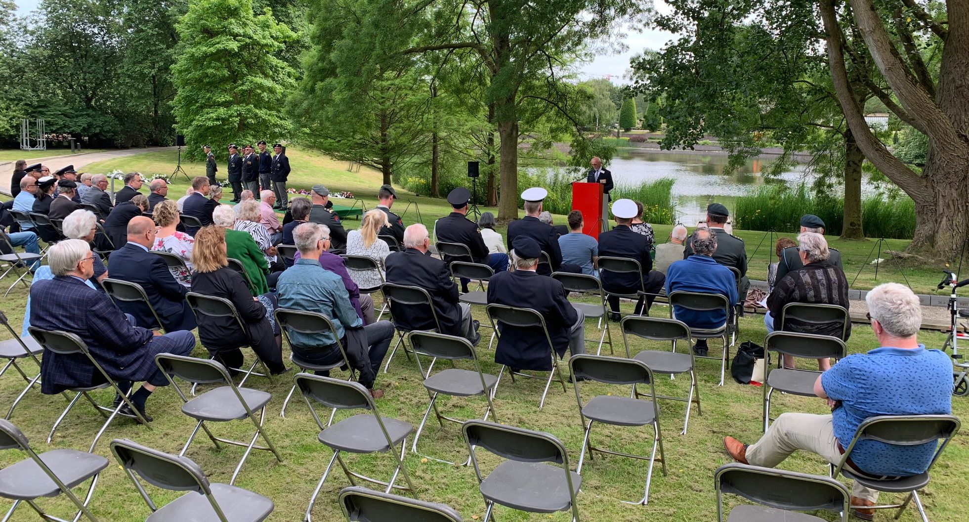 Dit jaar werd de herdenkingsrede uitgesproken door Theo Vleugels, generaal-majoor buiten dienst en algemeen directeur van de Oorlogsgravensichting. Na de één minuut stilte en het Wilhelmus werden er kransen en bloemstukken gelegd namens diverse organisaties. Ook dit jaar staat de drijvende krans over de vijver weer symbool voor het oversteken van de oceaan.