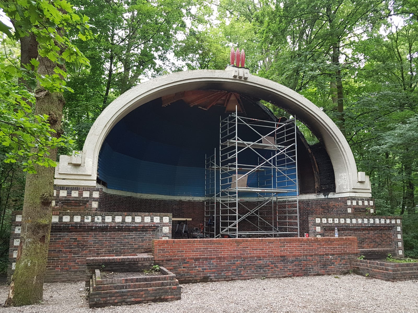 Het herstel van de muziekkoepel in het Sterrebos is donderdag van start gegaan. De verwachting is dat de reparatie enige tijd in beslag gaat nemen.