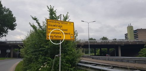 De omleidingsroutes worden met borden ter plaatse aangegeven in zowel Nederlands als Engels. De aankondiging op de borden wordt vooraf aangegeven. Het Engels op de borden is echter niet geheel vlekkeloos:
