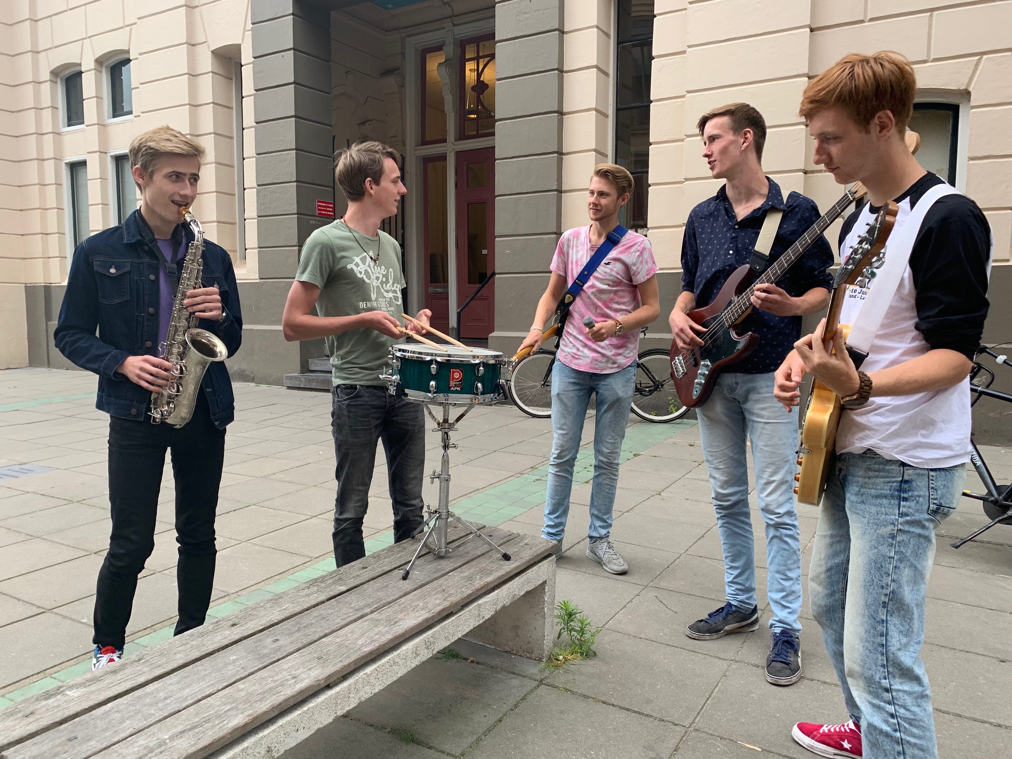 “Eigenlijk is het een jaar of vier geleden begonnen tijdens de muzieklessen”, vertelt Sieger de Goede van de band. “Na heel veel proberen en oefenen en verschillende samenstellingen zijn we nu een vijf mans-formatie die covers spelen.” Edo-Jan, Rein, Boris, Robin en Sieger zijn de vijf jongens die de band vormen. “Muziek maken zit in ons bloed. En ik moet ook eerlijk zeggen dat het op dit moment heel goed werkt. Er is een hele mooie chemie.”