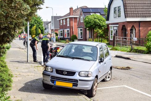 Het ongeluk gebeurde even na 10.00 uur op de Kerkstraat in Hoogkerk. “Hoe het ongeluk heeft kunnen gebeuren is onbekend”, vertelt Ten Cate. Politieagenten en een ambulance waren snel ter plaatse. “De motorrijder is gecontroleerd in de ziekenwagen, maar het slachtoffer hoefde niet mee naar het ziekenhuis.” Zowel de auto als de motor werden door een bergingsbedrijf weggesleept. “De schade aan de motor is mij onbekend, de auto hield aan de botsing een scheefstaand achterwiel over.”
