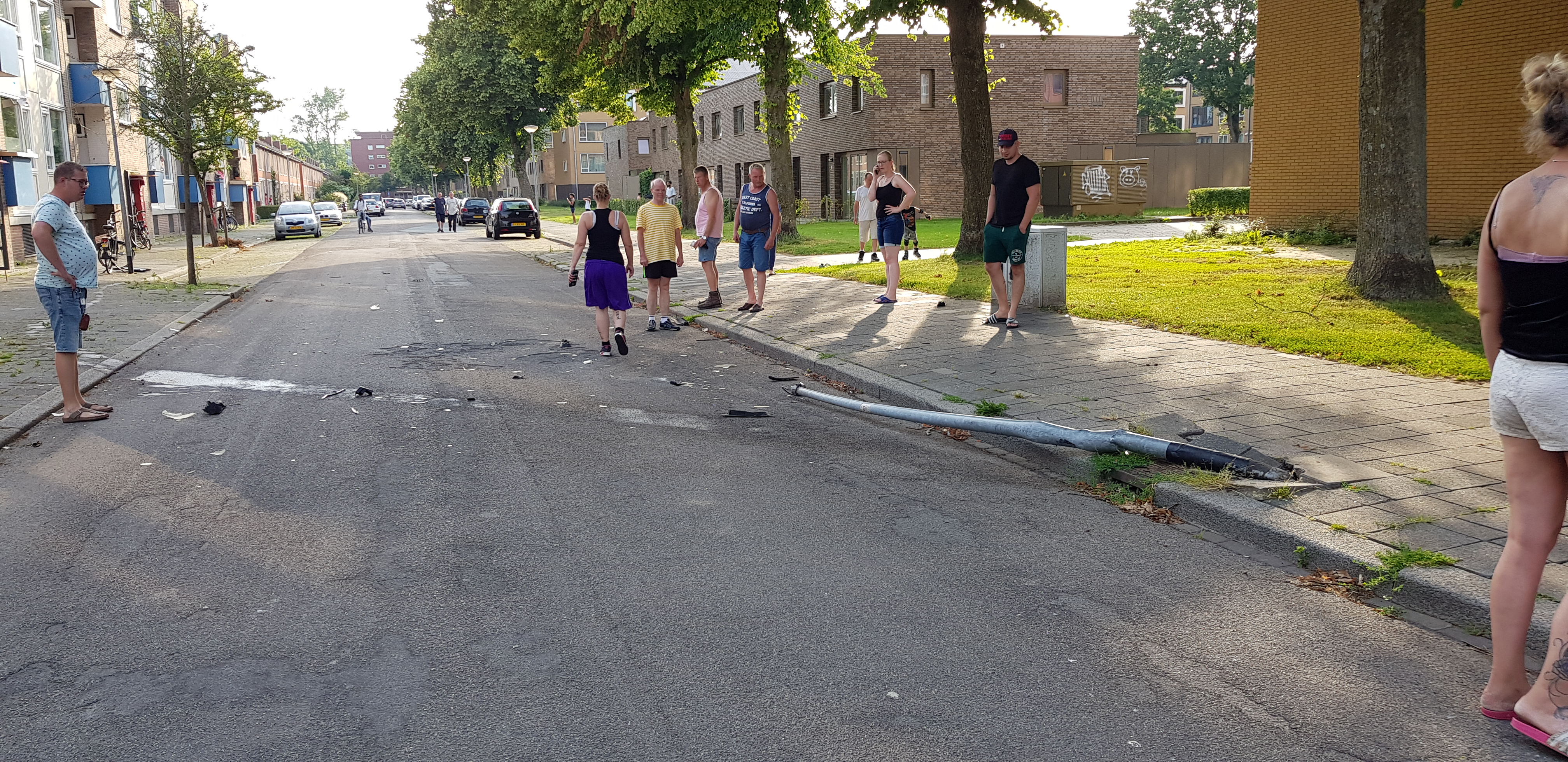 Bij het rammen van de lantaarnpaal is de automobilist zijn voorste kentekenplaat verloren. Het ging vermoedelijk om een donkerblauwe of zwarte Volkswagen.