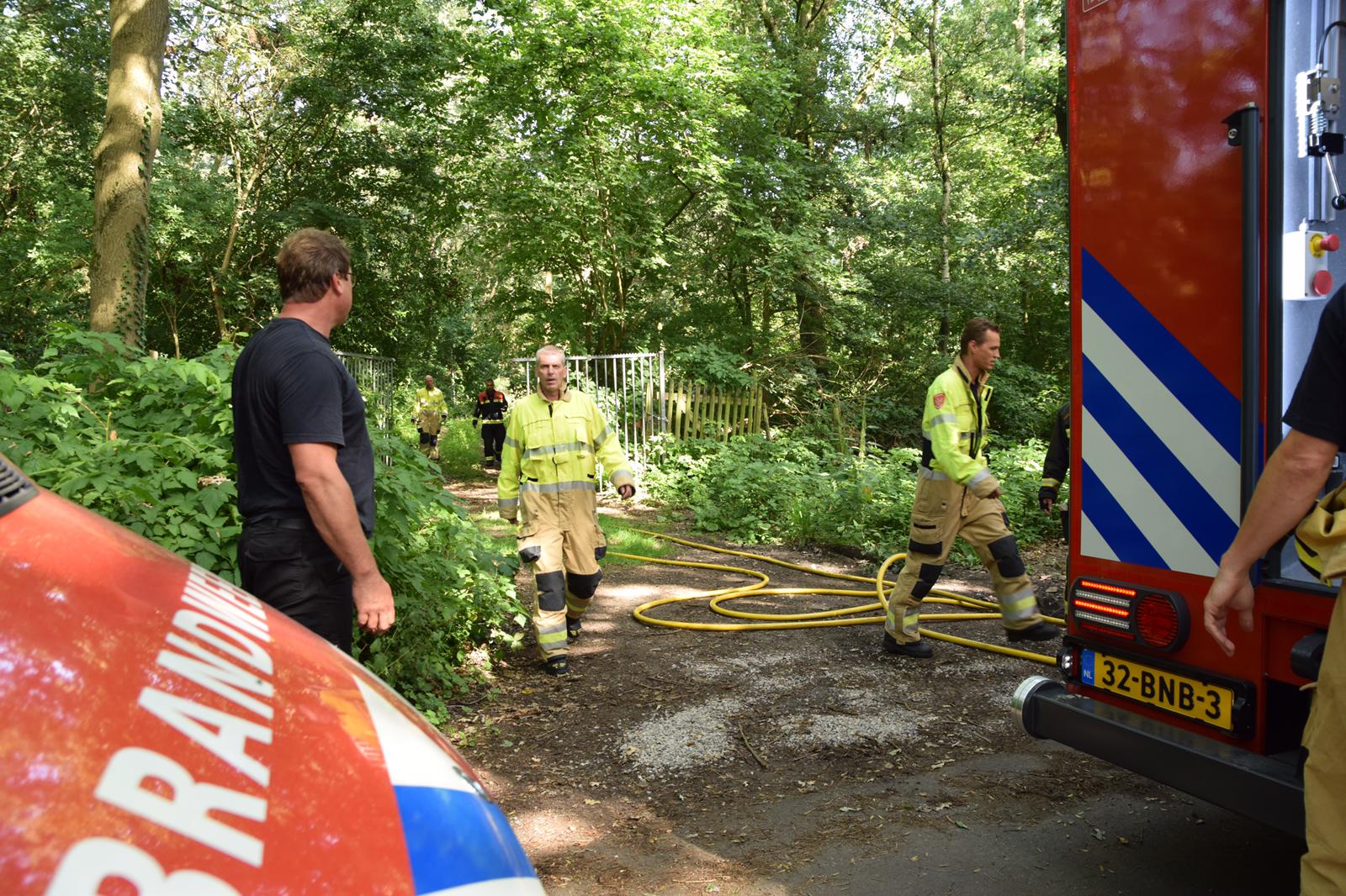 Volgens de brandweer is het terrein moeilijk bereikbaar met water. Mogelijk staan er gasflessen op het terrein.