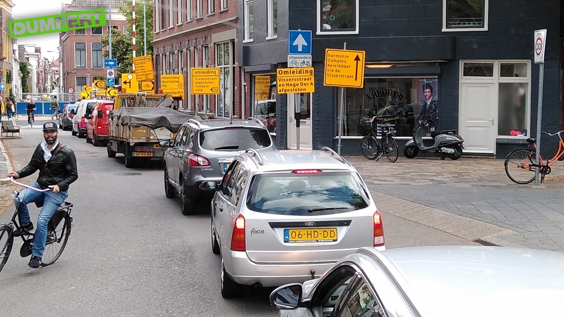 ‘Bordenmaker met ADHD’ kopt de website Dumpert bij een foto van de Verlengde Visserstraat.