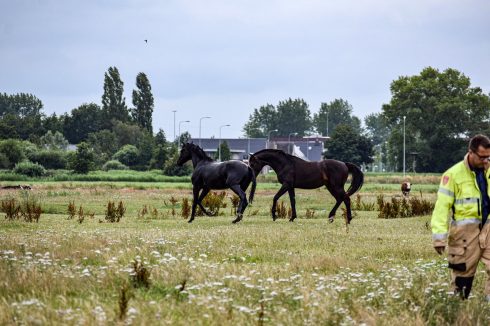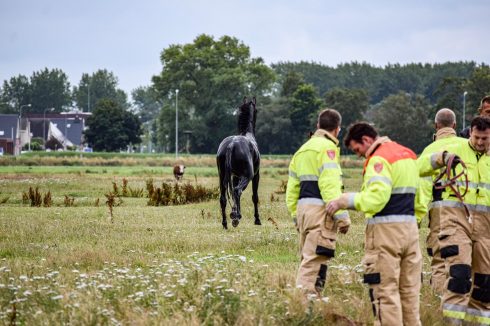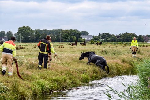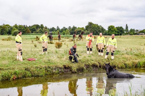Terwijl de duikers onderweg waren besloot de bemanning van de bluswagen nog een tweede poging te wagen. “Met behulp van brandslangen die onder het dier waren doorgehaald, en met vereende krachten van brandweerlieden en omstanders die kwamen helpen, lukte het om het paard veilig op de wal te helpen.” Volgens Ten Cate voegde het dier zich daarbij snel bij de andere paarden in het weiland, die de hele reddingsactie nauwlettend hadden gevolgd.