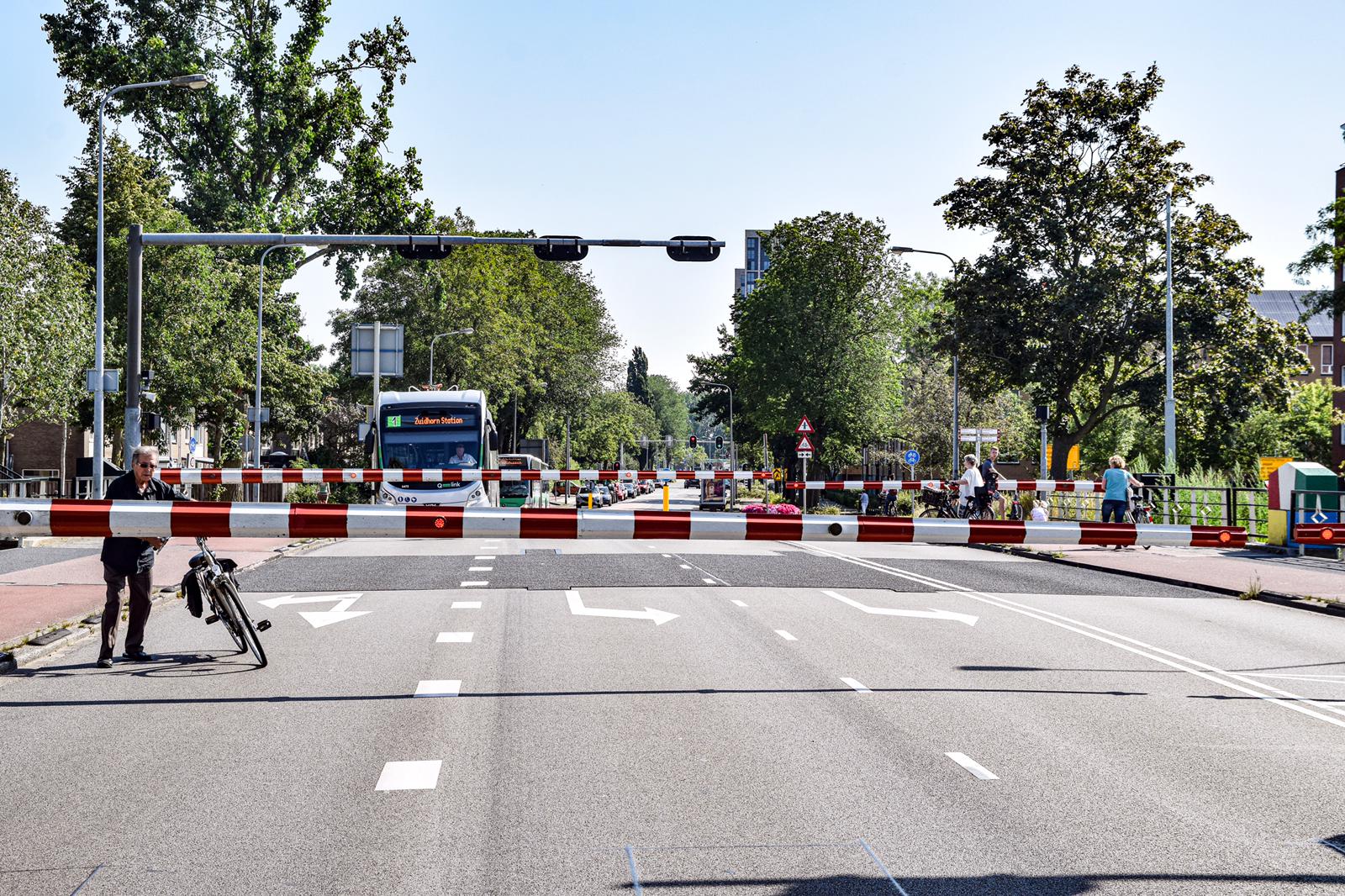 Ook de slagbomen voor het autoverkeer bleven gesloten, waardoor er voor de stoplichten op de Friesestraatweg verkeersdrukte ontstond.